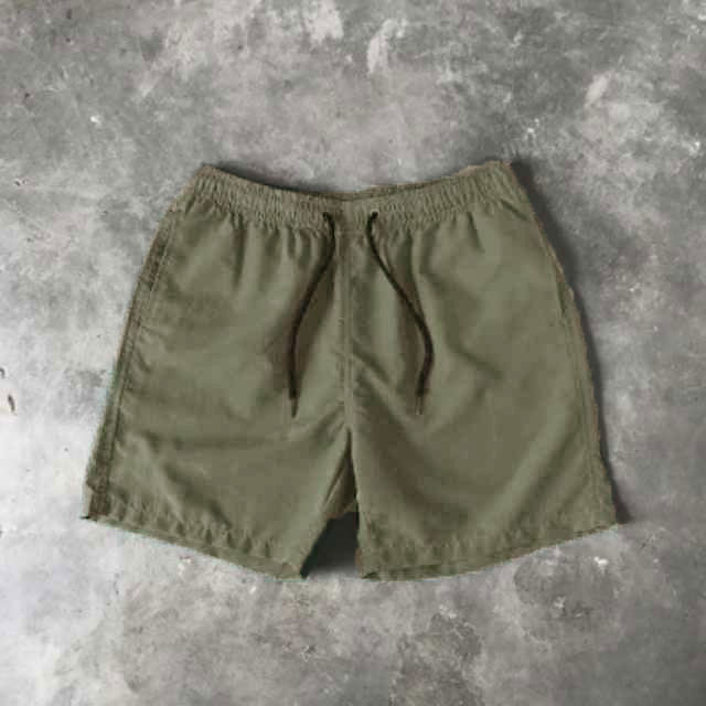 | 撥水加工を施したナイロン生地を使用したメンズショートパンツ。 ラフに穿けてリラックスシーンにもビーチでも部屋着でも活躍する万能アイテムです。 膝上丈でゆるめのシルエットなので脚長効果も。 ウエストはゴムシャーリングと紐のイージーパンツ仕様。 吸汗速乾性のある素材でビーチ、キャンプや野外フェス、水遊びなどにおすすめ。 | |