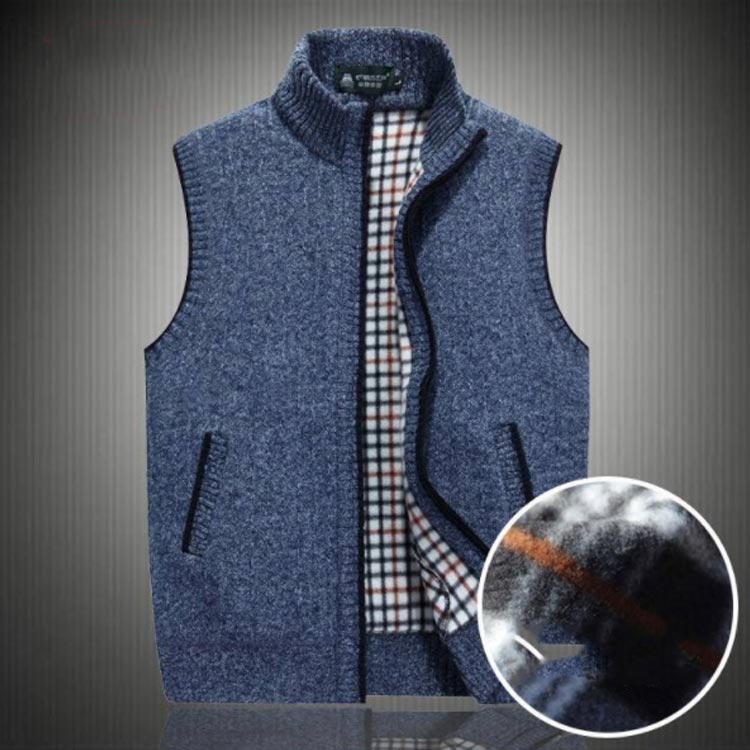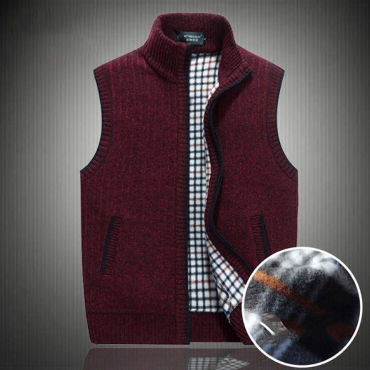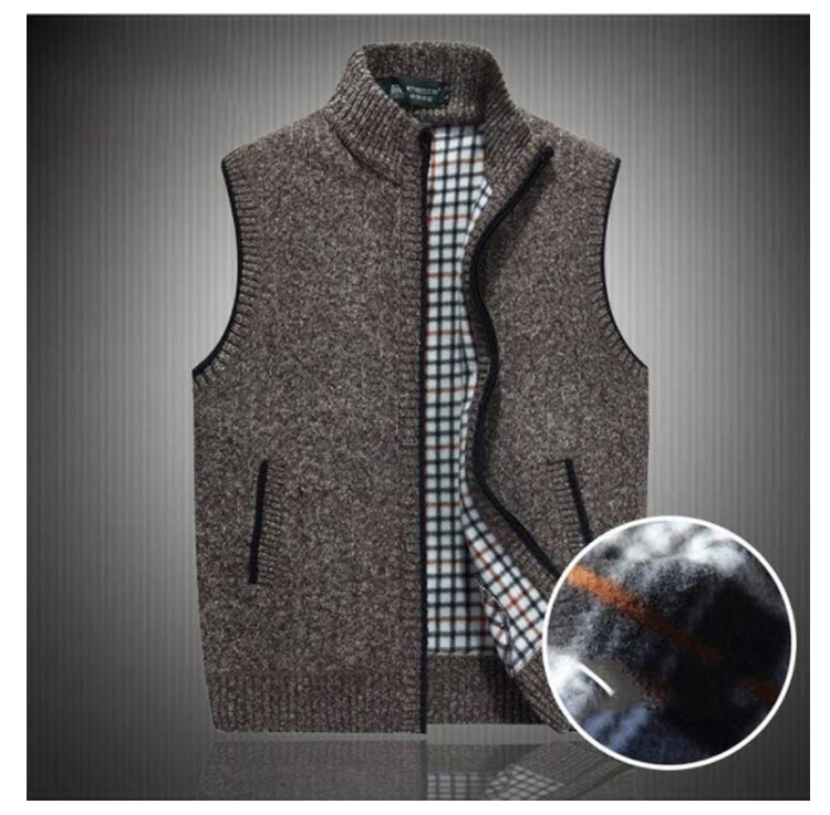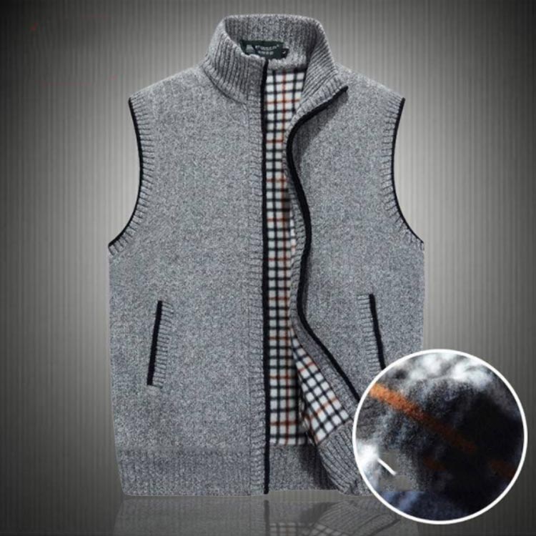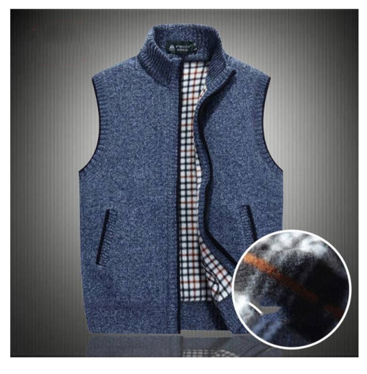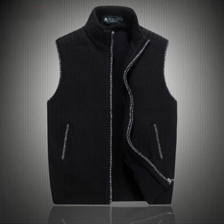 ニットベスト メンズ 男性 裏地フリース 厚手 前開き ファスナー 袖なし ノースリーブ 立ち襟 スタンドカラー ポケット付き あたたかい おしゃれ かっこいい シニアファッション 高齢者 普段着 部屋着 ホームウェア 入所 入院 外出着 秋 冬 全6色