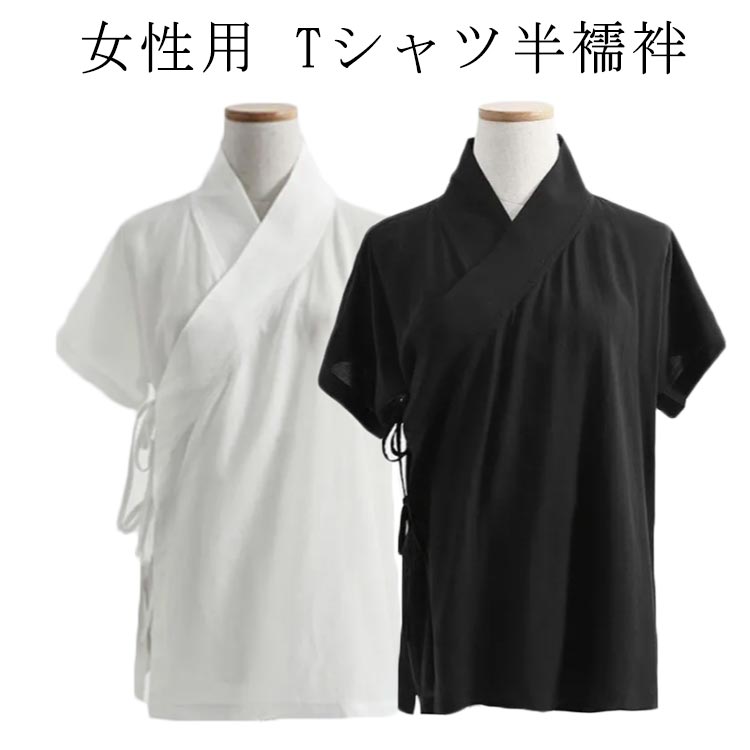 送料無料 Tシャツ 半襦袢 レディース 女性用 半袖 襦袢 着物 簡単 衿付き きもの インナー 簡単 初心者 一体型 和装 浴衣 肌着 速乾 快適 女性 白 黒 ホワイト ブラック
