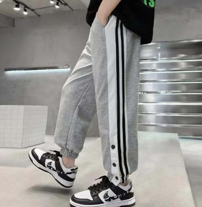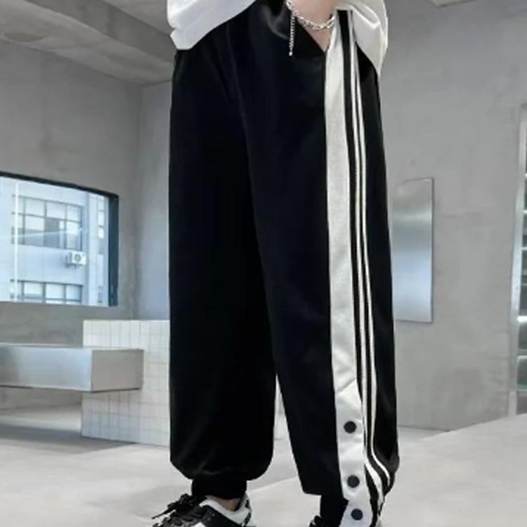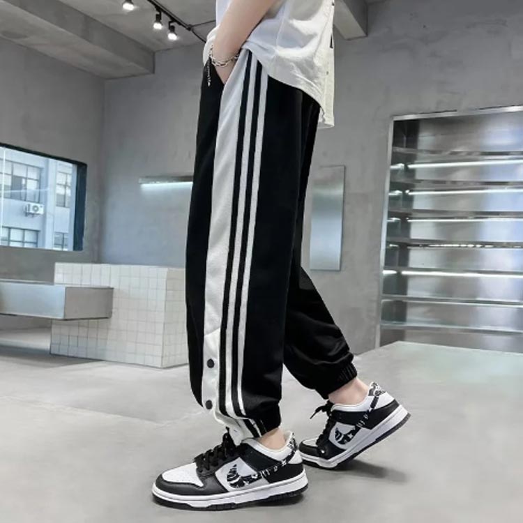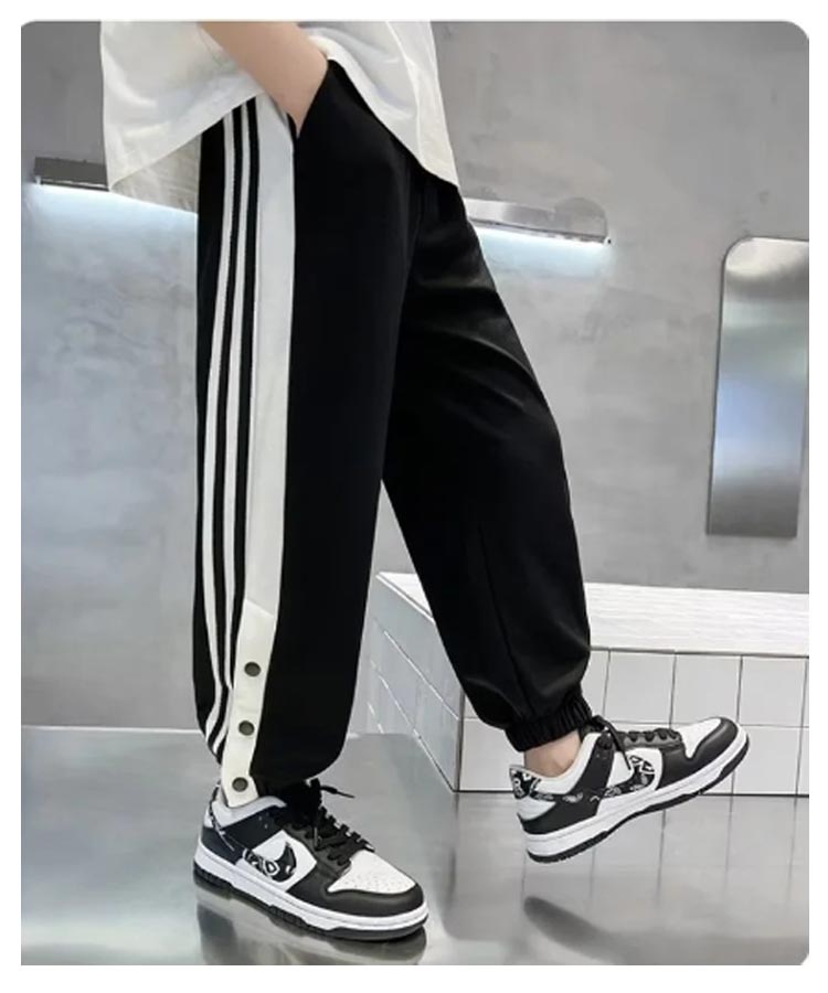 バスケットボールパンツ キッズ ジュニア 裾ボタン ジャージパンツ バスケパンツ バスケットボール 練習用パンツ サイドライン スナップボタン 長ズボン ロングパンツ ジャージ 下 男の子 女の子