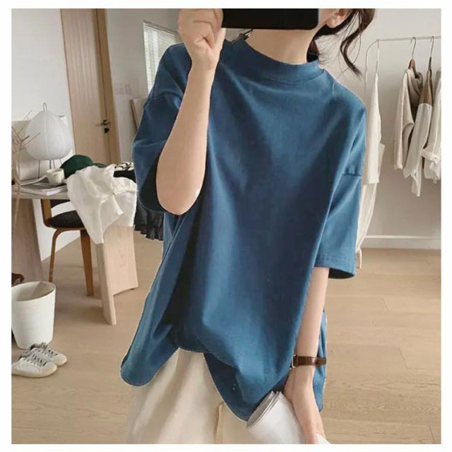 | 程よいトレンド感と大人な雰囲気をプラスする半袖tシャツ 首を隠しすぎないプチハイネックで夏もすっきりと着られます。 袖と身頃が一体になったドルマンスタイルで気になる二の腕も自然に隠せます。 ゆとりのあるシルエットが身体のラインもカバーしてくれるのも嬉しいポイントです。 シンプルだけどディテールに拘ったデザインだから、一枚でサマになるアイテム。 | |