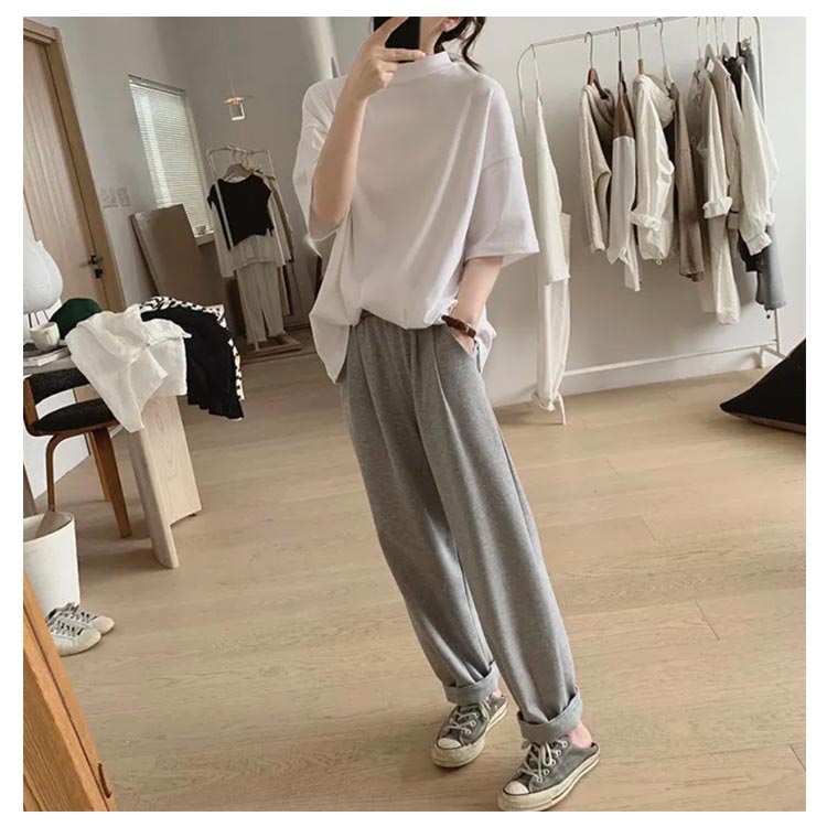 程よいトレンド感と大人な雰囲気をプラスする半袖tシャツ首を隠しすぎないプチハイネックで夏もすっきりと着られます。袖と身頃が一体になったドルマンスタイルで気になる二の腕も自然に隠せます。ゆとりのあるシルエットが身体のラインもカバーしてくれるのも嬉しいポイントです。シンプルだけどディテールに拘ったデザインだから、一枚でサマになるアイテム。