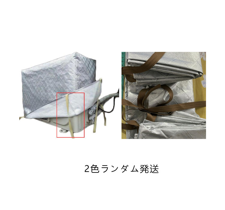 オフシーズンの室外機を日・雨・雪・風・ホコリ・汚れから守り表はアルミ箔素材で、紫外線からしっかり保護、劣化防止に。裏側は柔らかい起毛素材で、強風など時カバーとの摩擦で室外機に傷つける心配もありません。完全防水加工なので、雨や雪をシャットアウト。雪国でも安心してお使い頂け、翌シーズンの使い始めまでキレイな状態を保てます。側面に配管ホース用のスリットが入っています。エアコン室外機の上からかぶせるだけ取り付け簡単。結び紐もついているから、風で飛ばされる心配はありません。