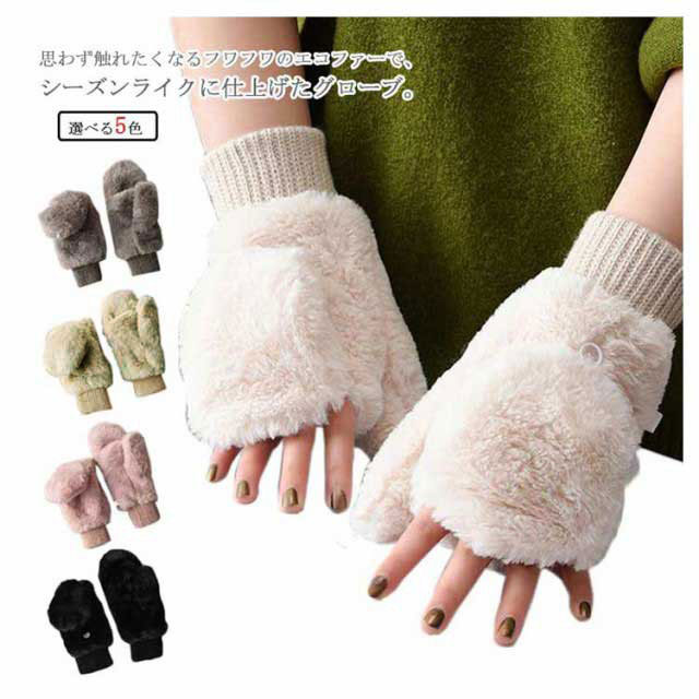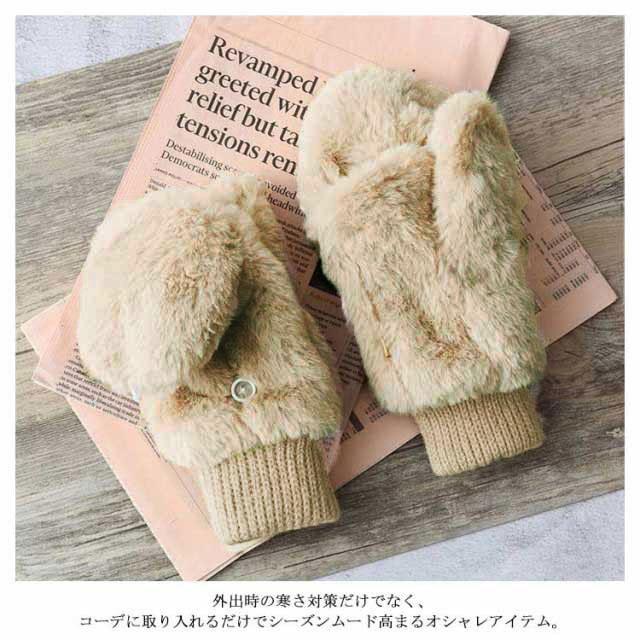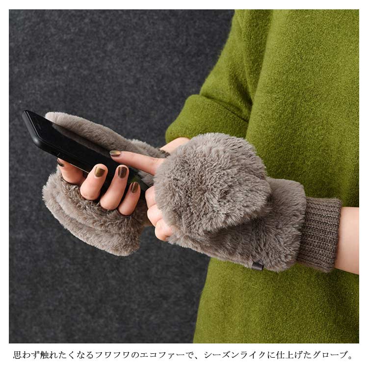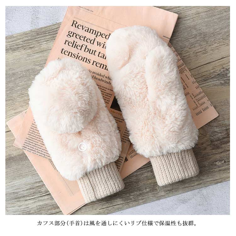 【送料無料】手袋 ミトン 2way 裏起毛 レディース 指なし スマホ対応 もこもこ 起毛 ファー 女の子 厚手 無地 シンプル かわいい 冬 秋冬 グローブ リブ付き 長め あったか 裏ボア 防寒 保温 アウトドア
