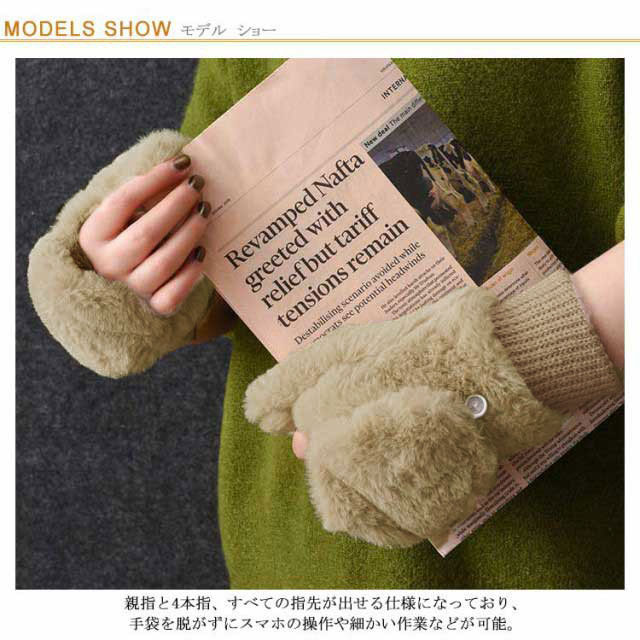 | 思わず触れたくなるフワフワのエコファーで、シーズンライクに仕上げたグローブ。 裏地と表面は柔らかな起毛素材で、優れた保温性と優しい肌触りが魅力。 カフス部分(手首)は風を通しにくいリブ仕様で保温性も抜群。 親指と4本指、すべての指先が出せる仕様になっており、手袋を脱がずにスマホの操作や細かい作業などが可能。 外出時の寒さ対策だけでなく、コーデに取り入れるだけでシーズンムード高まるオシャレアイテム。 | |