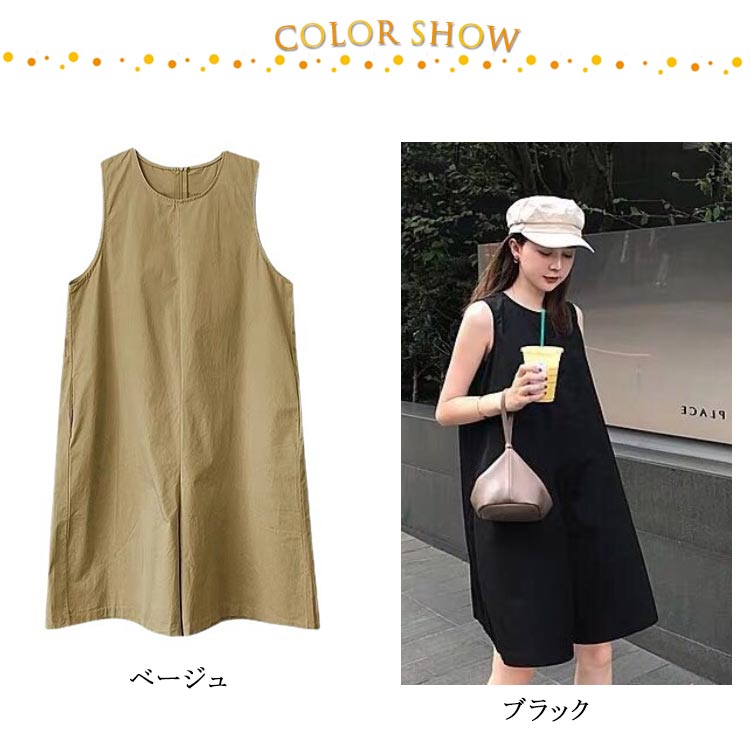 ラッシュガード オールインワン 水陸両用 ロンパース 水着 サイドポケット レディース ノースリーブ サロペット パンツ ワイドパンツ ガウチョパンツ ゆったり 体型カバー 可愛い お洒落 夏 旅行 海 ビーチ UVカット 大きいサイズ 【送料無料】