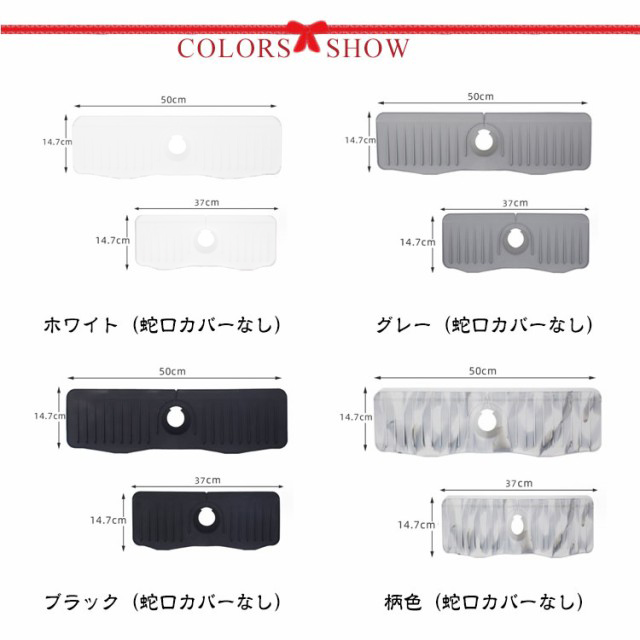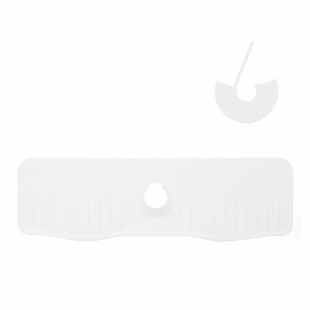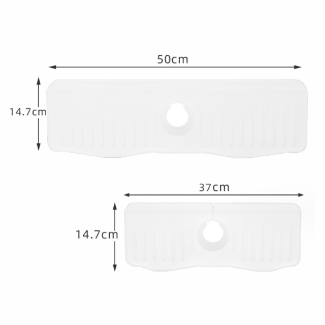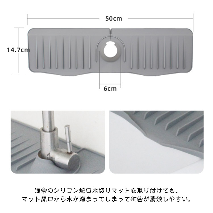 蛇口カバー付き 蛇口水切りマット 50cm シリコン 蛇口排水マット 長い ロング 蛇口用シリコン水切りマット 水汚れ防止 速乾 抗菌 防カビ 乾燥用マット 滑り止め キッチン バスルーム 洗面台 トレイ用排水マット 白 ホワイト