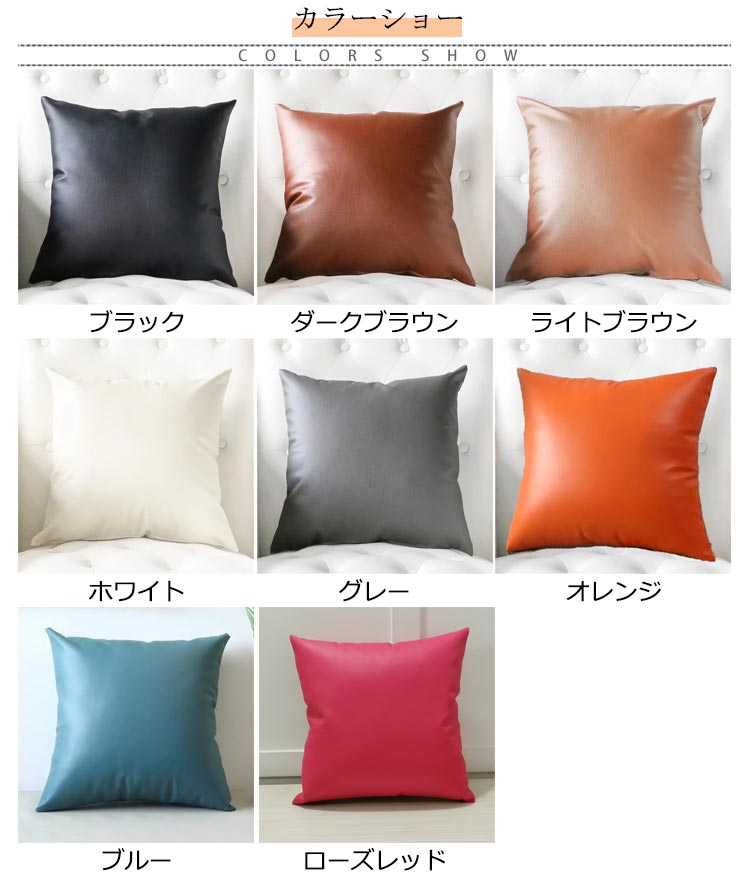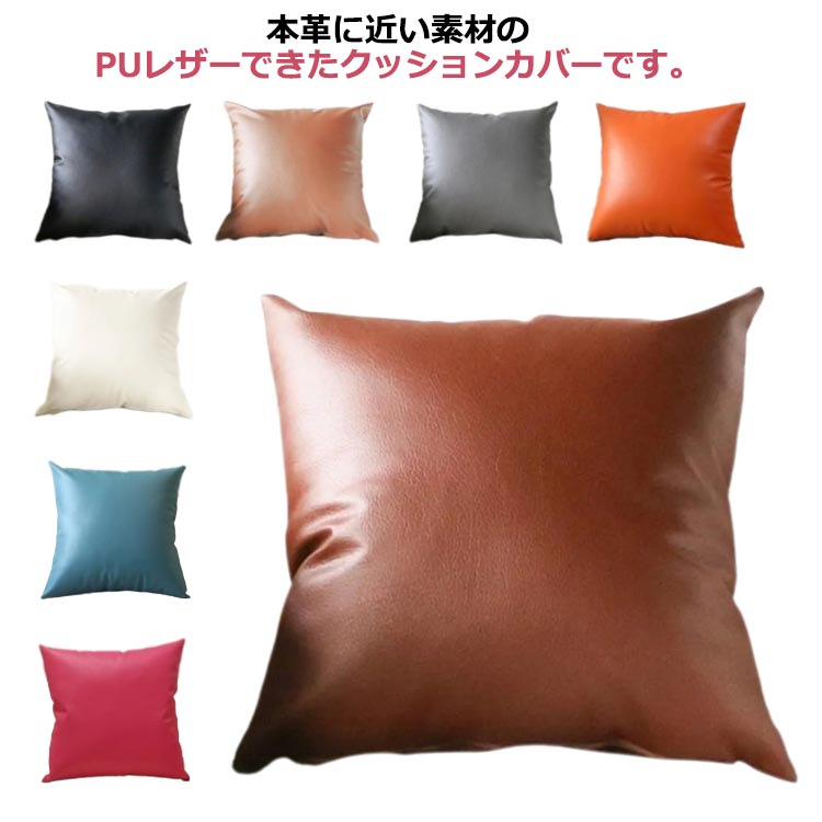 クッションカバー レザー 背あてクッションカバー 45×45cm フェイクレザー ファスナー開閉式 無地 PU 合皮 合成皮革 汚れ防止 防水 撥水 無地 かっこいい おしゃれ 北欧 モダン ヴィンテージ風 模様替え 春 夏 秋 冬 送料無料 ギフト プレゼント 引越し祝い 新居