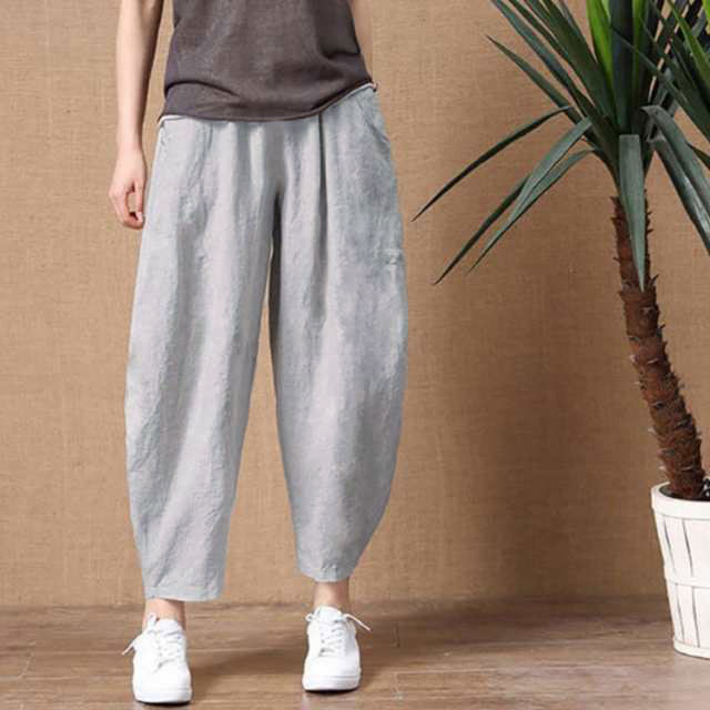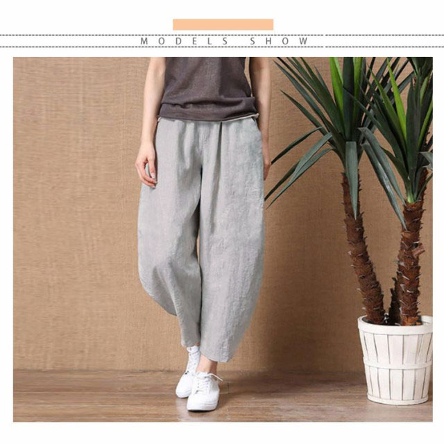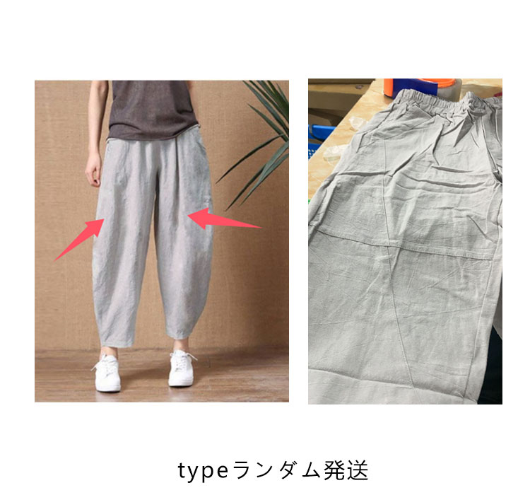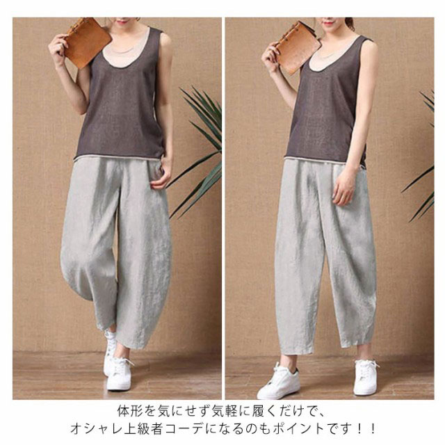 全3色×8サイズ!綿麻 サルエルパンツ ワイドパンツ ガウチョパンツ 9分丈 クロップドパンツ リネンパンツ 綿麻 カジュアルパンツ ウエストゴム ゆったり シンプル 無地 体型カバー カジュアル 春夏 送料無料