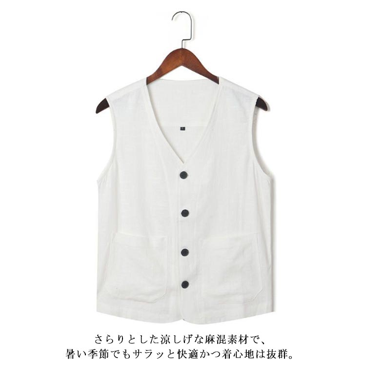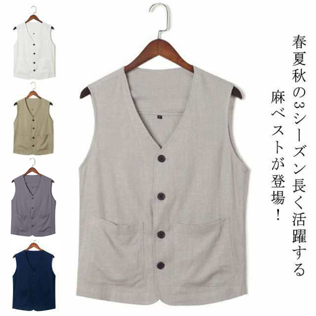 麻 ベスト メンズ ジレ サマーベスト 前開き リラックス 薄手 Vネック 紳士 おしゃれ 麻 春夏 リネンベスト メンズベスト スーツベスト 清涼感 無地 シンプル ビジネス カジュアル 父の日 ギフト プレゼント 敬老の日 秋 通勤 実用的 大きいサイズ レイヤード 送料無料