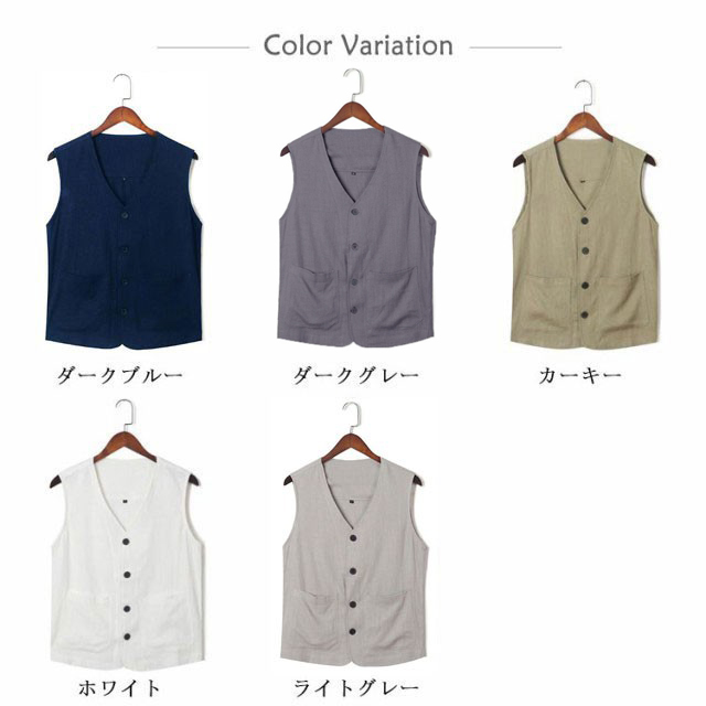 | 春夏秋の3シーズン長く活躍する麻ベストが登場! さらりとした涼しげな麻混素材で、暑い季節でもサラッと快適かつ着心地は抜群。 Vネックとボタンを配したデザインで上品な印象に仕立てられています。 両側にポケットがあり、手ぶらでのお出かけに、これからのシーズンに一着あると、とっても、便利な多機能ベストです。 シャツに合わせてクラシックな装いも、Tシャツに合わせてカジュアルな装いも自由自在にでき、多少ラフに扱ってしわになったとしても自然な雰囲気を失わない、これまでいろいろなベストを着てきた方にもご満足頂けるリネンベストに仕上がりました! | |