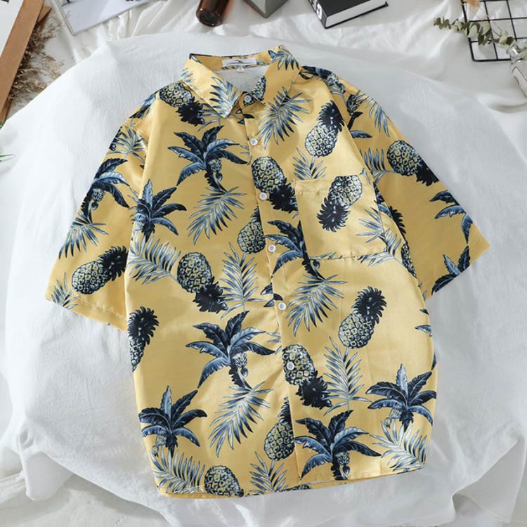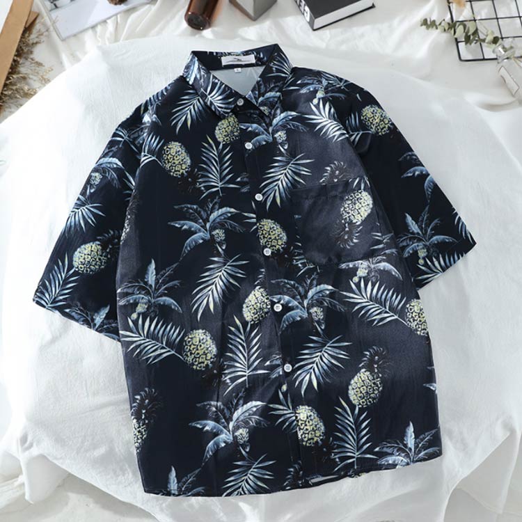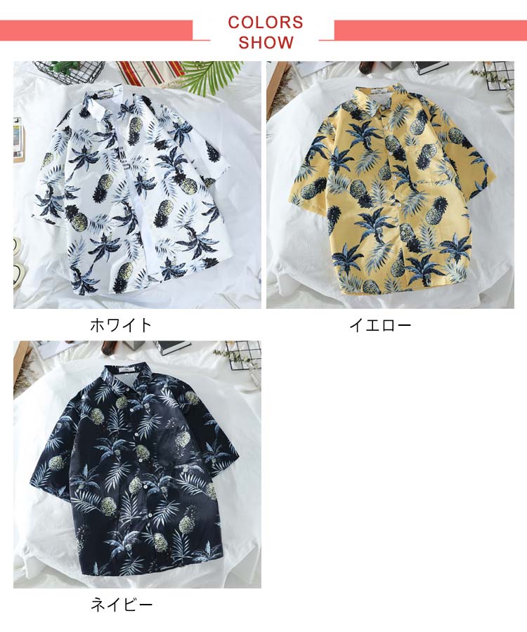 アロハシャツ レディース メンズ シャツ 開襟シャツ 夏物 パイナップル柄 ハワイアン アロハシャツ半袖 大きいサイズ 開襟 半袖 オープンカラー カジュアル ストリートリゾート レトロ ネイビー 送料無料