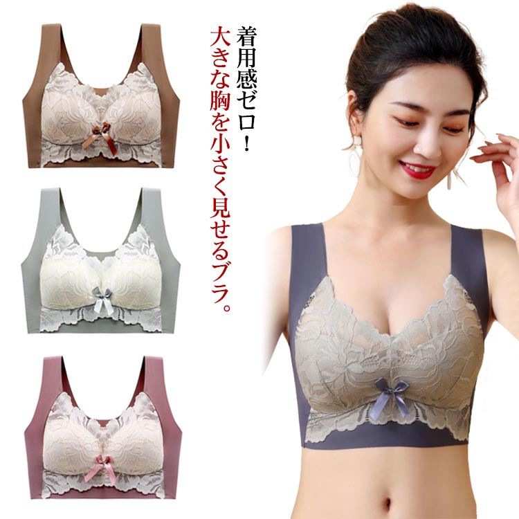 全4色 送料無料 小さく見せるブラ ブラジャー ブラ 小さく 見せる 小さく見せるブラジャー 大きな胸を小さく見せるブラ 薄い 大きいサイズ 胸を小さく見せるブラジャー ノンワイヤー ブラ レース ブラジャー フルカップ