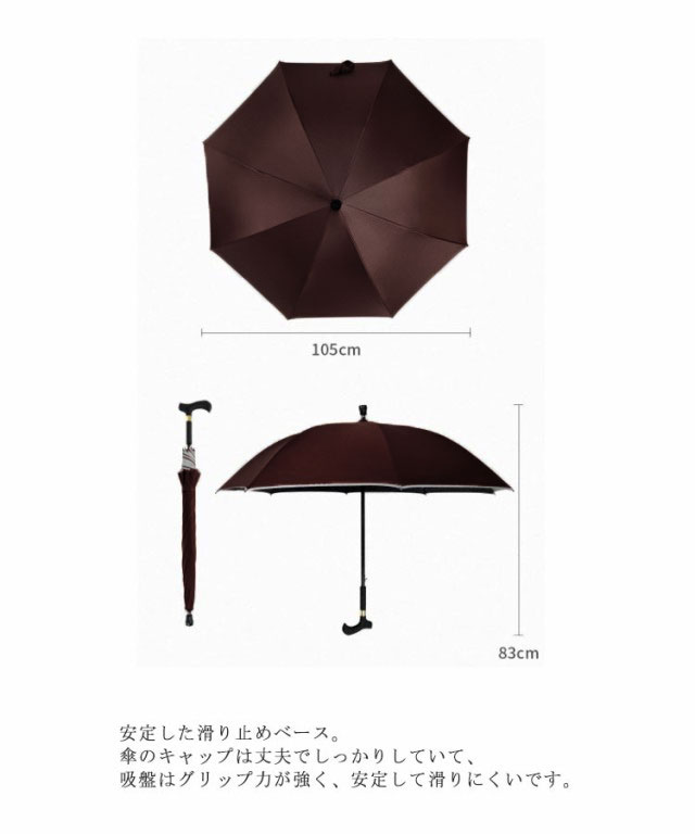 | ステッキとしてご使用になれるステッキ傘。軽量でお年寄りの旅行に便利! ワンキー自動オープニング。傘を自動的に開くための1つのキー、晴れた日や雨の日に使用できます。 杖タイプのハンドル。取っ手は持ちやすく、 傘は杖としても使えます。 安全反射ストリップ。夜のより安全な旅行。 安定した滑り止めベース。傘のキャップは丈夫でしっかりしていて、吸盤はグリップ力が強く、安定して滑りにくいです。 傘にもなる、杖にもなるスマートなデザイン、散歩や旅行、お出かけ、登山など時の荷物が少なくて済むから嬉しい。 敬老の日、父の日、母の日などのプレゼントにも喜ばれます。 | |