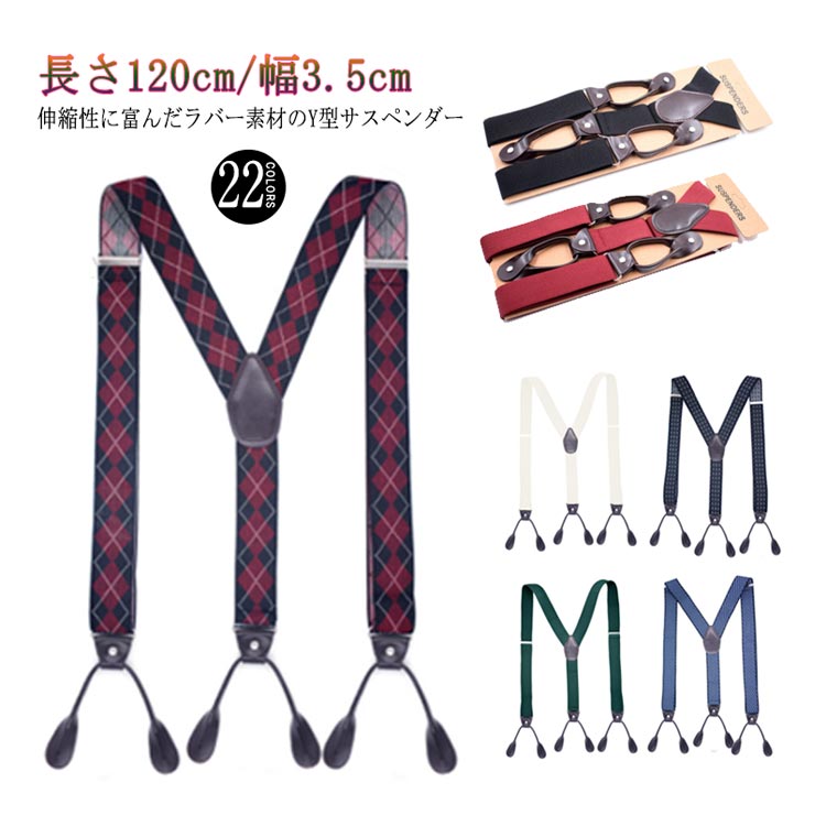 選べる22色 Y型サスペンダー 35mm 長さ120cm チェコ軍 Y型サスペンダー メンズ レディース 男女兼用 調節可能 結婚式 カジュアル おしゃれ 錆びない シンプル ユニセックス