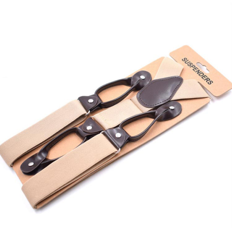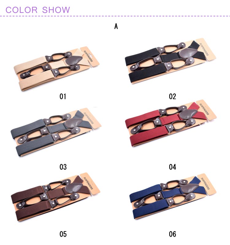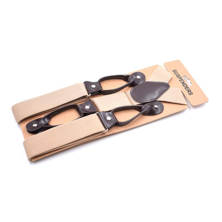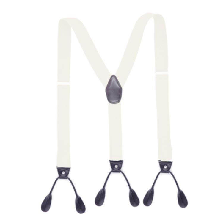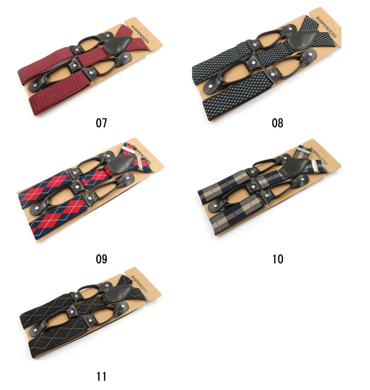| 伸縮性に富んだラバー素材のY型サスペンダー 部分的にレザーが使用されており、 ボタン留めの仕様でとてもクラシックな作りとなっています。 | |