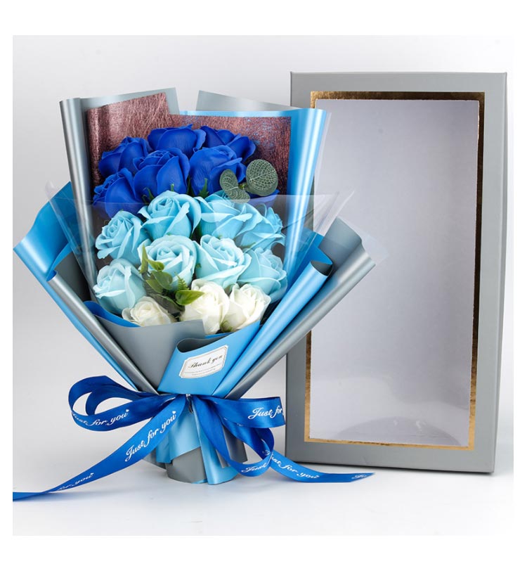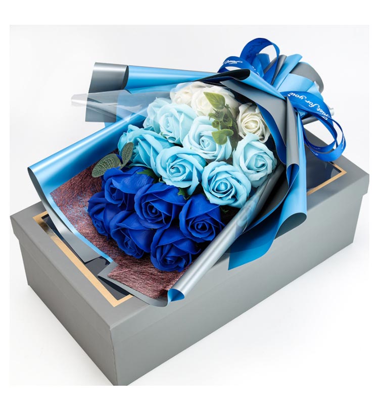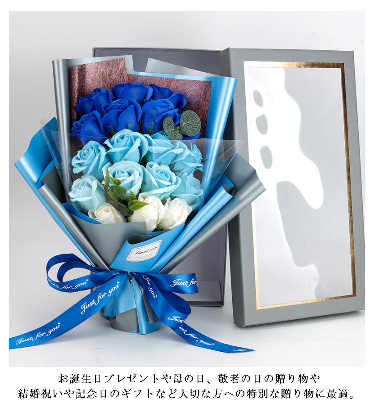ソープフラワー 花束 青い 薔薇 バラ 枯れないお花 シャボンフラワー 石鹸フラワー ギフトボックス付き 退職祝い 誕生日 鑑賞 母の日 プレゼント ブーケ アレンジメント 女性 妻 両親 結婚祝い 造花 ローズ 祖母 女友達 送別会 ボックス