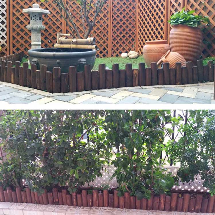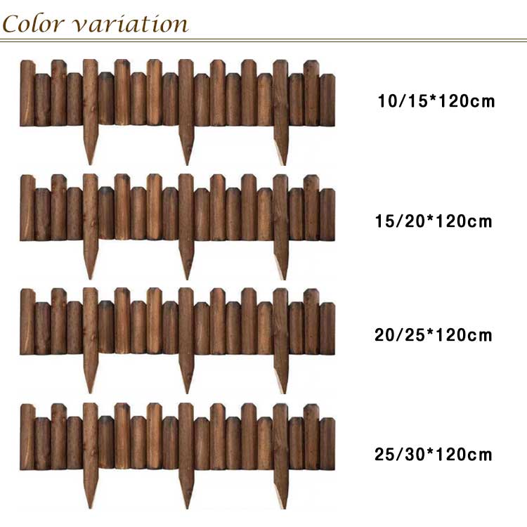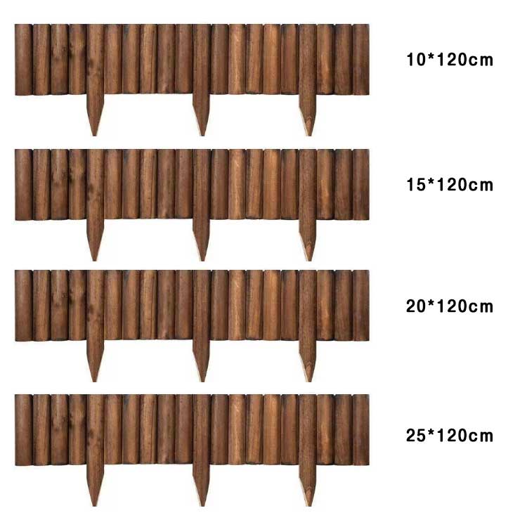 | 地面に差込むだけの簡単木製フェンスです。 炭化処理済みの上質なウッド、防腐?防虫で、長くおしゃれにお使いいただけます。 天然木の風合いとシンプルなデザインが、お庭のアクセントになります。 お庭や玄関のプランターの周りに使ったカバー、花壇の仕切り、ガーデニングのアクセントになるアイテムです。 | |