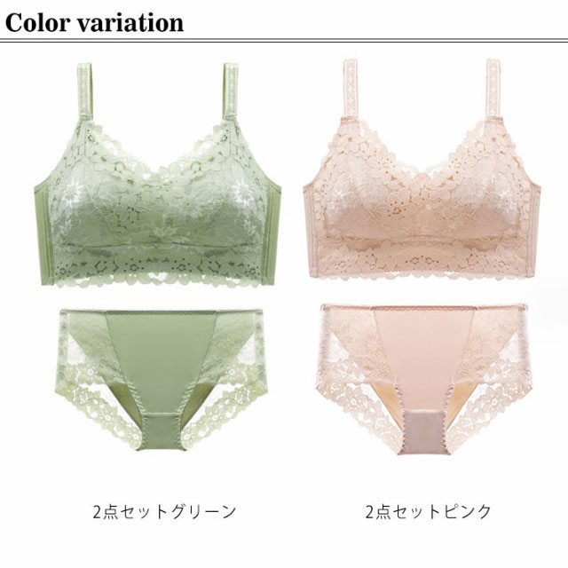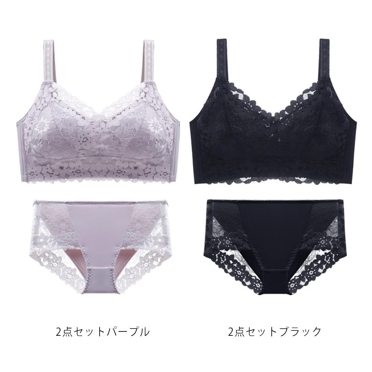 胸を小さく見せるブラ ブラジャー 小さく見せるブラジャー 花柄 レース ブラ 下着 薄手 胸が小さく見えるブラ 2点 ブラ ショーツ セット ぶら 大きいサイズ ノンワイヤー 着痩せ 補正下着 20代 30代 40代 レディース