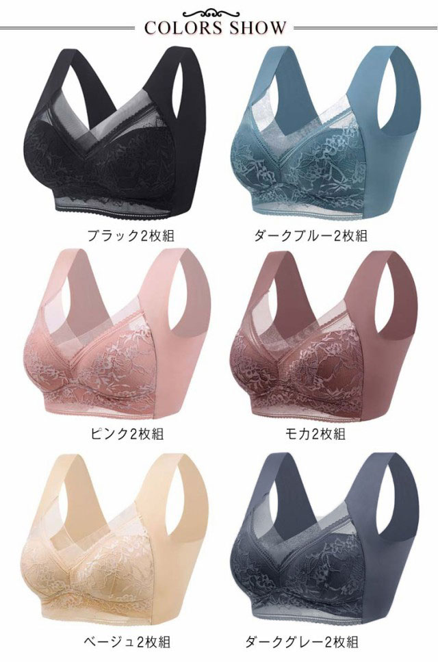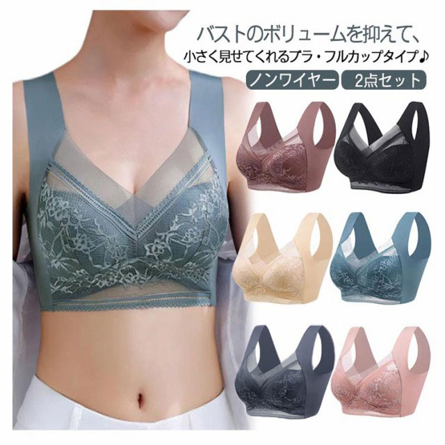 ナイトブラ 2点セット 大きいサイズ ブラジャー 育乳ブラ ブラトップ 胸を小さく見せるブラ ノンワイヤー 脇高ブラ 大きいサイズ 小胸 脇肉 補正 バストアップ 谷間 背肉 レース インナー