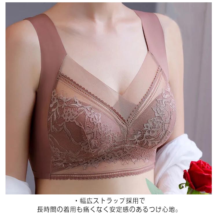 ・バストのボリュームを抑えて、小さく見せてくれるブラ・フルカップタイプ♪・バストをスマートに見せることにより着痩せ効果も◎・ノンワイヤーなので締め付け感も少なく、らくちんにバストをキレイにメイクします。・脇高設計のため気になる脇のお肉もフラットに。自然にバストをすっきり。・幅広ストラップ採用で長時間の着用も痛くなく安定感のあるつけ心地。・360°美しいシルエットを作りあげます。