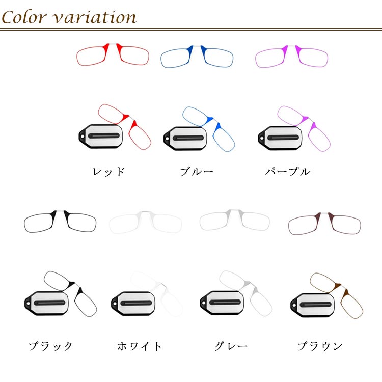 | 軽量及び柔らかいクリップで鼻に負担が少ない! 薄くてシンプルなデザインのオシャレな鼻掛け、ノーズクリップ老眼鏡、ルーペです。 薄いケースにすっぽり収まるのでケースをスマホのケースに付ければいつでも、どこでも簡単に取り出して装着できます。 カードケースのような薄いデザインで収納もらくらく。 | |