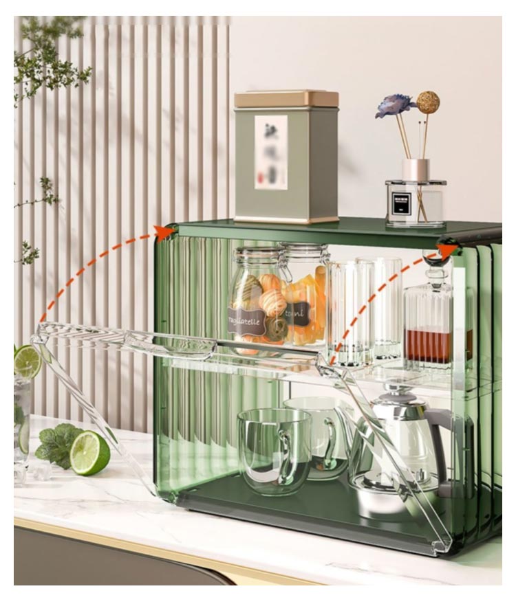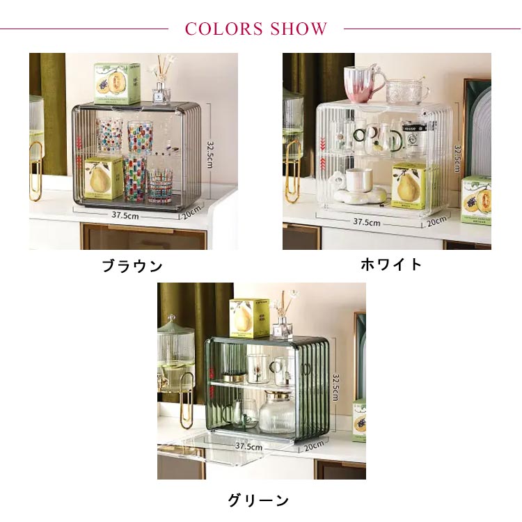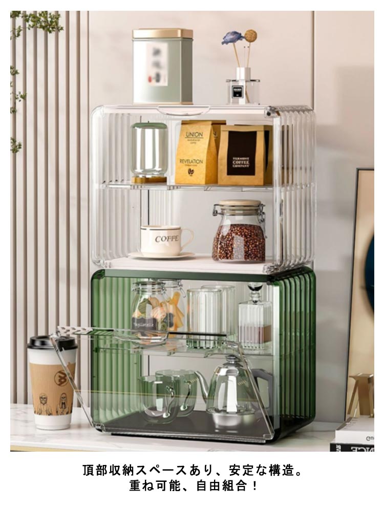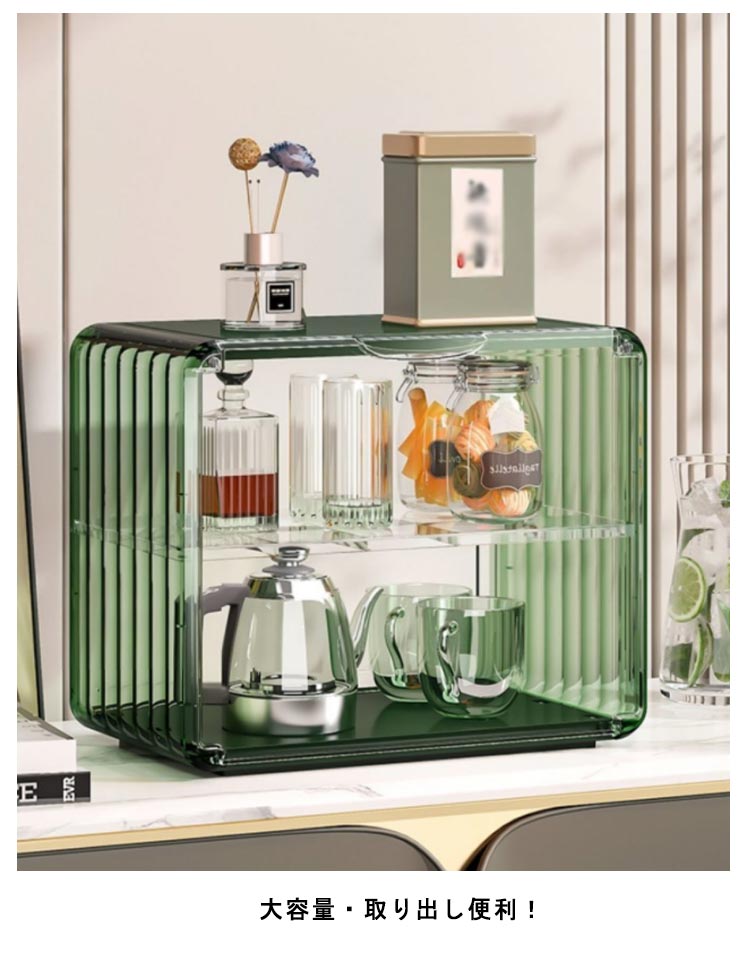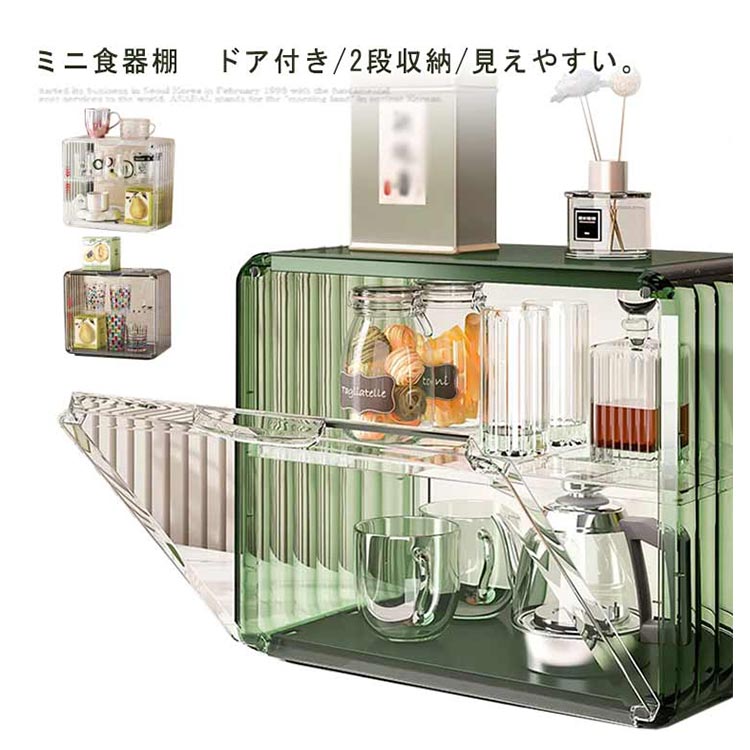 | ミニ食器棚 ドア付き/2段収納/見えやすい。 磁力開閉ロック。使用便利! 取り外し可能な仕切り板。使用便利、手入れ簡単。 大容量?取り出し便利! 頂部収納スペースあり、安定な構造。重ね可能、自由組合! | |