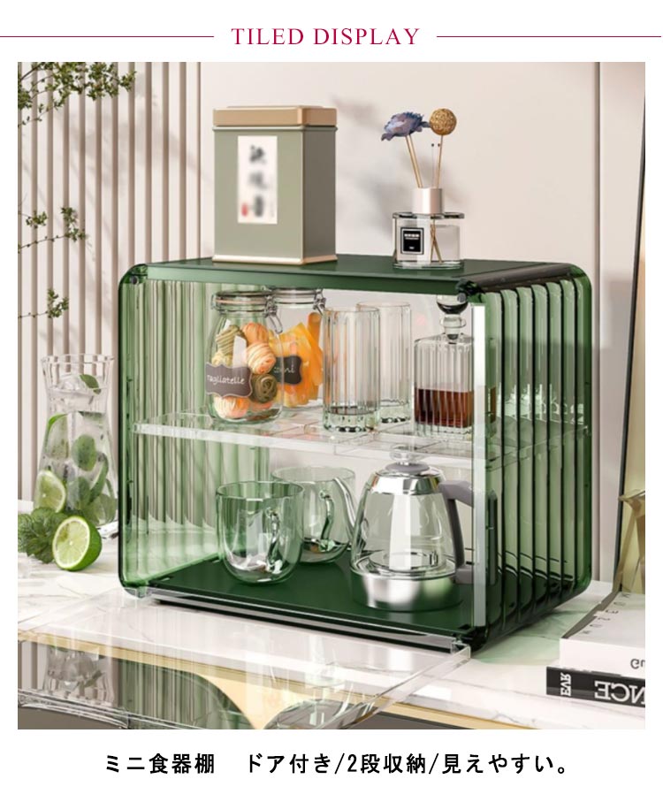 ミニ食器棚 食器棚 ミニキッチンキャビネット キッチンラック ラック 上置き 卓上 ラック 棚 キッチン 収納ボックス 収納ケース キッチン 箱収納 収納 ボックス 扉付 おしゃれ 小型 2段 食器 卓上収納 小さい コンパクト カウンター上 一人暮らし