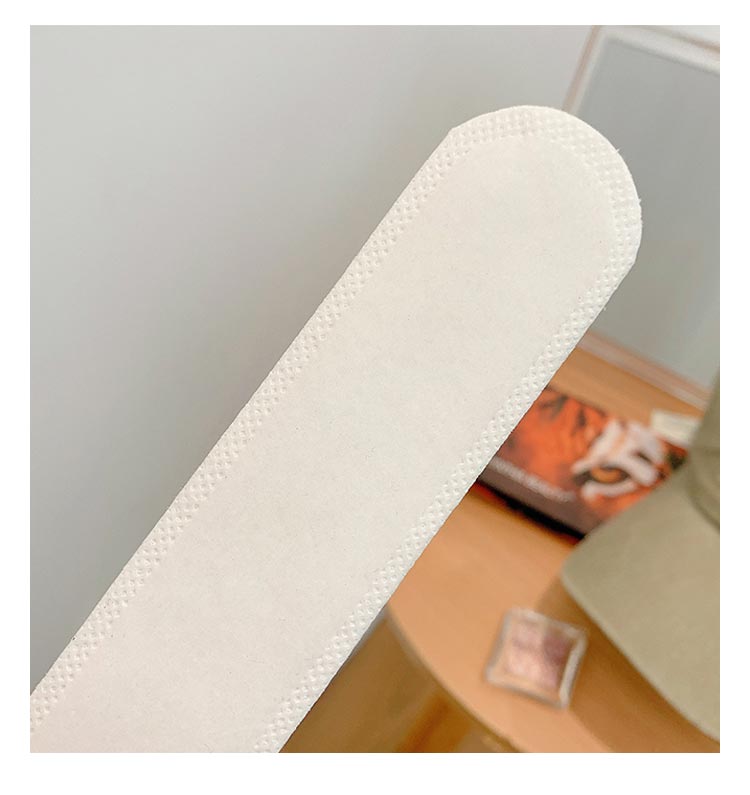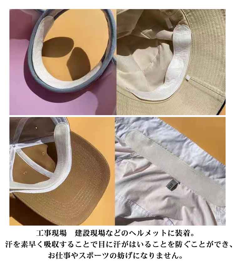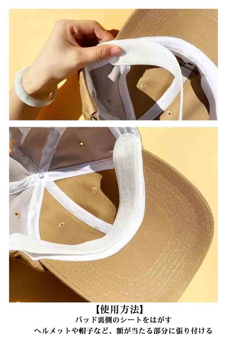 ・汗を吸い、帽子自体が汚れることを防いでくれる便利グッズ。・汗やファンデーションから帽子を守り、長持ちさせます。・ゴルフ・野球などのスポーツの際に帽子やサンバイザーの汗止めに。・工事現場・建設現場などのヘルメットに装着。・汗を素早く吸収することで目に汗がはいることを防ぐことができ、お仕事やスポーツの妨げになりません。シャツやジャケットの襟もとに貼るだけで、首筋の汗をブロック。汚れ防止にもなります。【使用方法】・パッド裏側のシートをはがす・ヘルメットや帽子など、額が当たる部分に張り付ける
