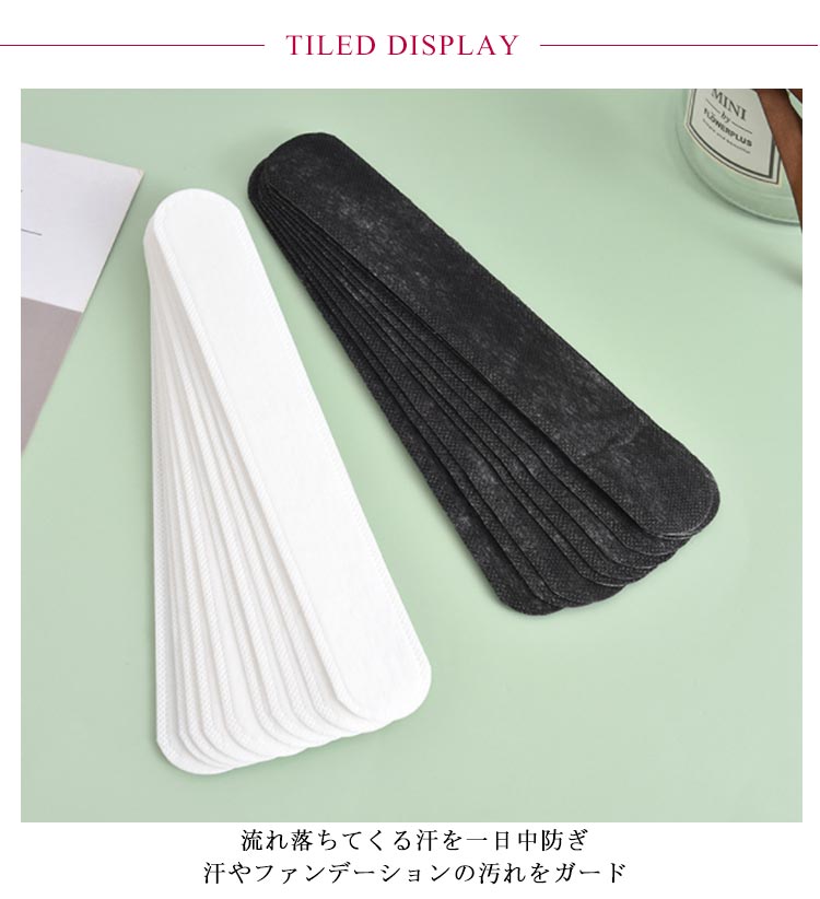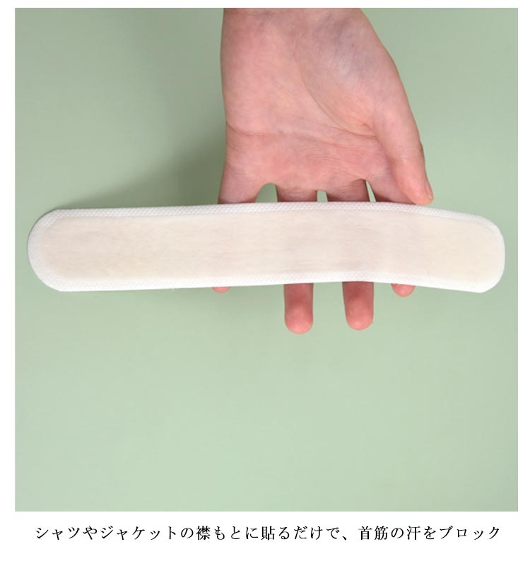 | 流れ落ちてくる汗を一日中防ぎ 汗やファンデーションの汚れをガード 貼り付け簡単 肌に優しいコットンを使用している! 抗菌と防臭加工によって汗による臭いも防いでくれます 60枚入り、使い捨てタイプ シャツやジャケットの襟もとに貼るだけで、首筋の汗をブロック 汚れ防止にもなります | |