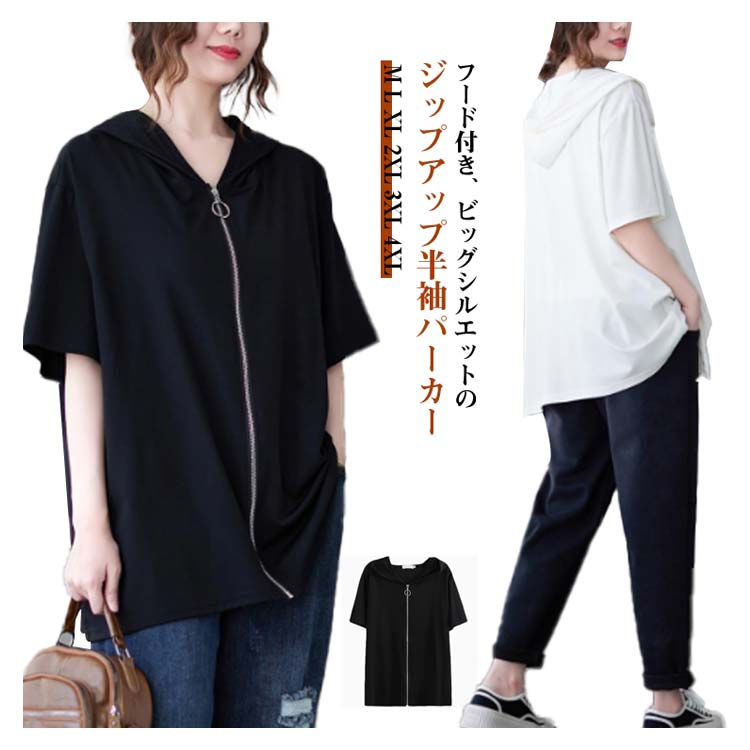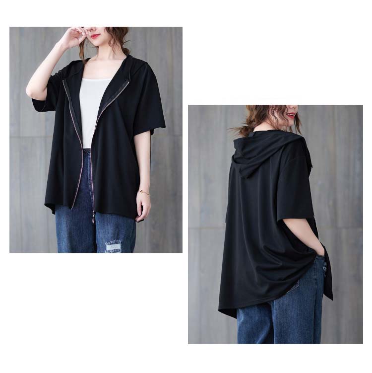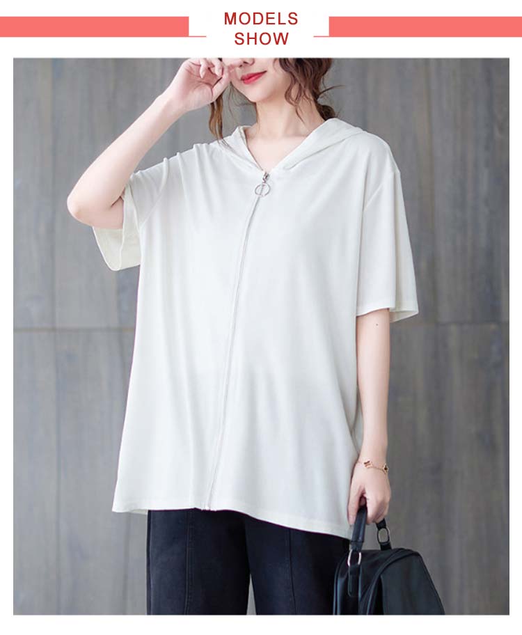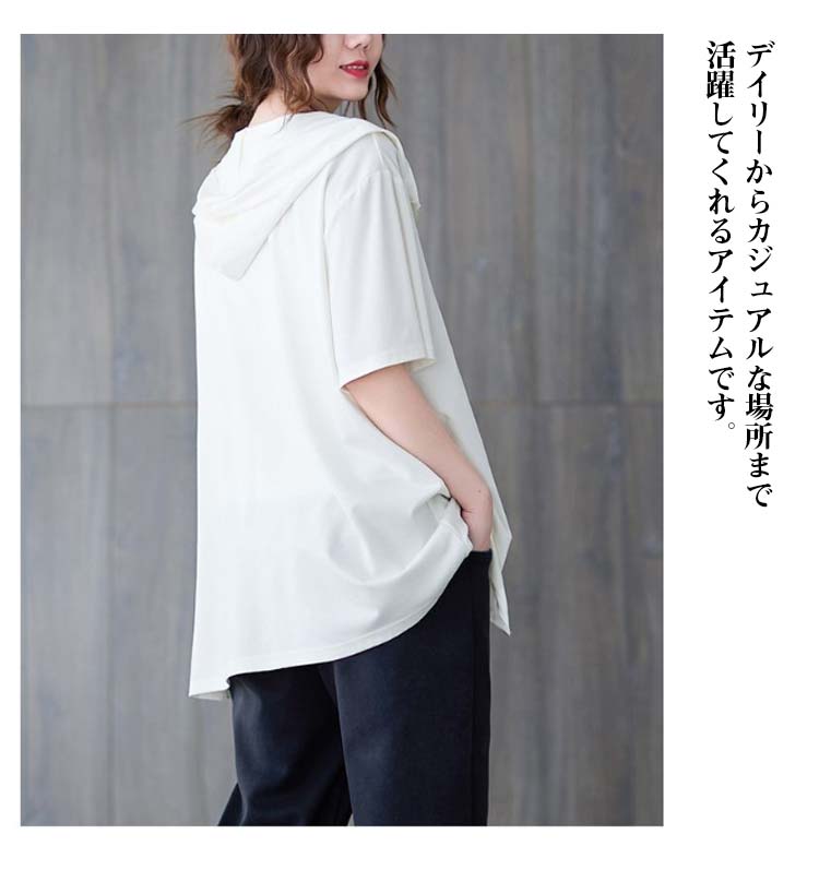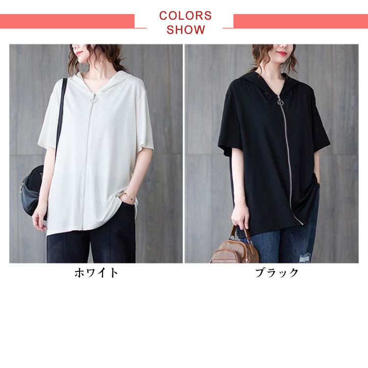 レディース ビッグシルエット 前開き サマーパーカー 半袖パーカー カジュアル 体型カバー トップス 羽織り おしゃれ 五分袖 フード付きパーカー サマーパーカー 大きいサイズ ゆったり 着瘦せ かわいい 前開き 送料無料