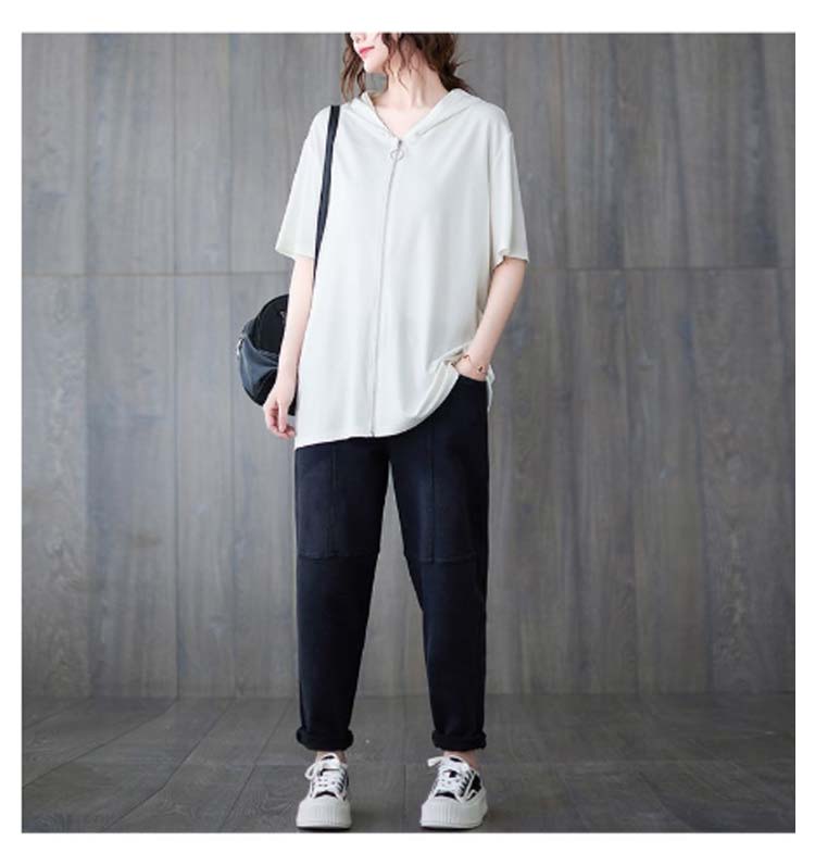 | フード付き、ビッグシルエットのジップアップ半袖パーカー シルエットも美しく丈なので、汎用性が高くコーデに取り入れやすい。 デイリーからカジュアルな場所まで活躍してくれるアイテムです。 | |