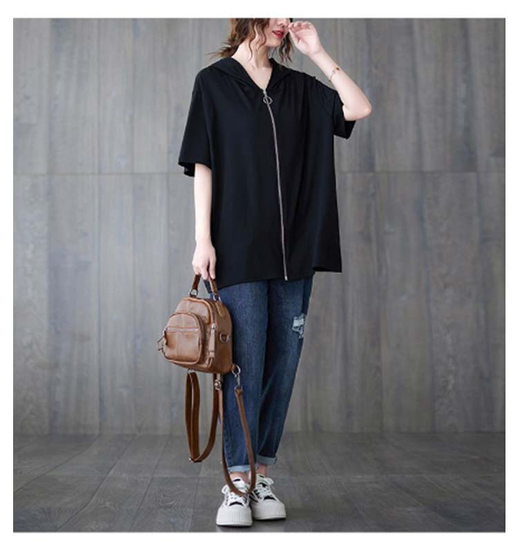 フード付き、ビッグシルエットのジップアップ半袖パーカーシルエットも美しく丈なので、汎用性が高くコーデに取り入れやすい。デイリーからカジュアルな場所まで活躍してくれるアイテムです。