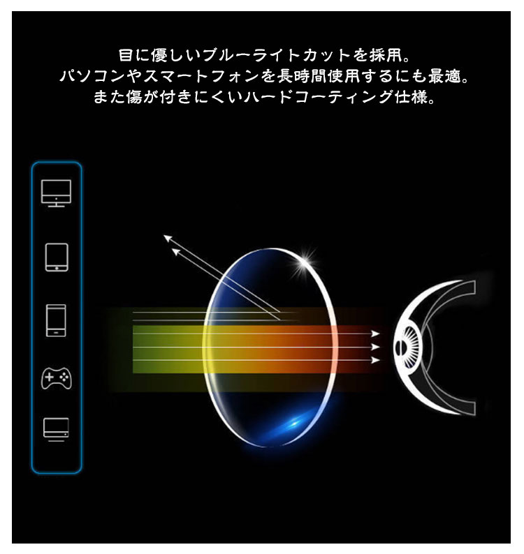 | 累進多焦点レンズを搭載するシニアグラス。 目に優しいブルーライトカットを採用。パソコンやスマートフォンを長時間使用するにも最適。また傷が付きにくいハードコーティング仕様。 レンズの中心からやや下部、主に手元を見る時の視点の位置に最も度数の強いレンズを配置し、外側に向かい同心円状に度数が滑らかに減少していく累進設計を採用。 自然な焦点(ピント)移動を可能にしました。さらに複数の度数を持った多焦点レンズを採用することにより、このひとつで幅広い老眼の方にクリアな視界と広い視野を提供してくれる優れもののシニアグラスです。 超軽量設計なので、長時間かけても疲れません!新聞紙や本、カタログ等スマホやPCを閲覧する際に何かと便利なので1本は持っていたい優れものグラスです! 【度数:1.00 、1.50 、2.00 、2.50 、3.00 、3.50 、4.00をご用意】 | |