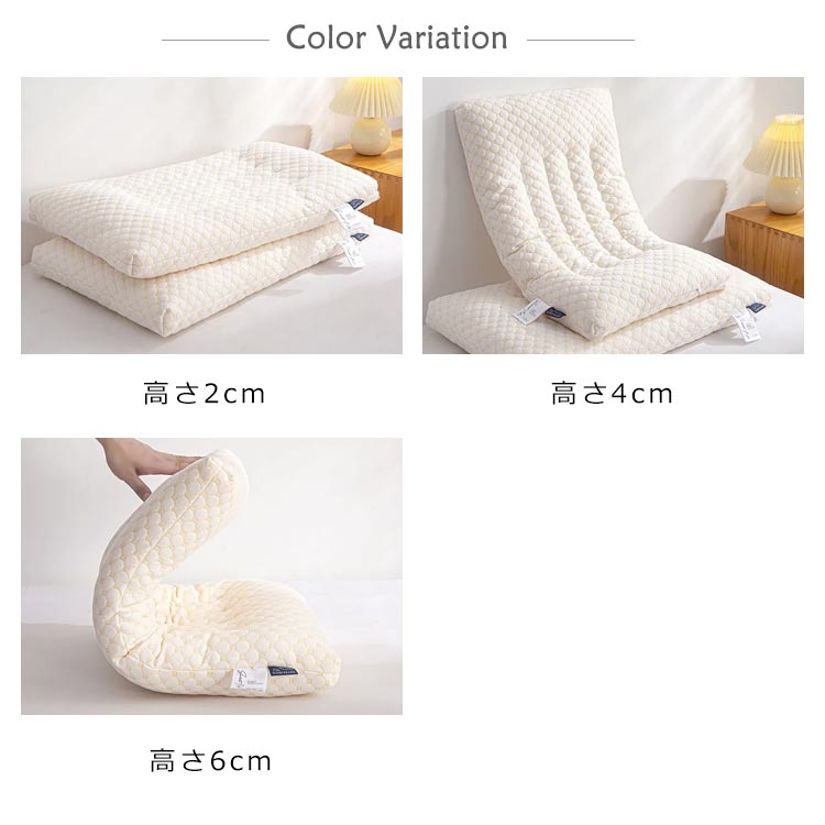 | 選べる高さ!首に負担がかからない低い枕 頭全体を優しくサポートでき、爽やかな睡眠環境を与えられ、気持ちよく眠れます。 高品質のポリエステルを採用し、羽毛のような柔らかさ、フカフカで触り心地がよい。 カバーにはお肌に優しい素材を採用し、柔らかくて手触り良い、通気性に良い。 ストレス解消しながら呼吸をスムーズさせ、イビキ軽減などの効果も期待できます。 変形しにくく、家庭用洗濯機で丸洗いができ、いつも清潔保つ。 | |