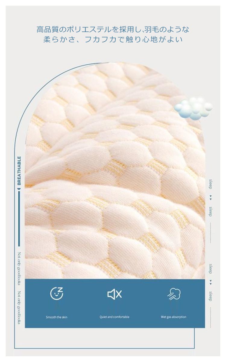 選べる高さ!首に負担がかからない低い枕頭全体を優しくサポートでき、爽やかな睡眠環境を与えられ、気持ちよく眠れます。高品質のポリエステルを採用し、羽毛のような柔らかさ、フカフカで触り心地がよい。カバーにはお肌に優しい素材を採用し、柔らかくて手触り良い、通気性に良い。ストレス解消しながら呼吸をスムーズさせ、イビキ軽減などの効果も期待できます。変形しにくく、家庭用洗濯機で丸洗いができ、いつも清潔保つ。