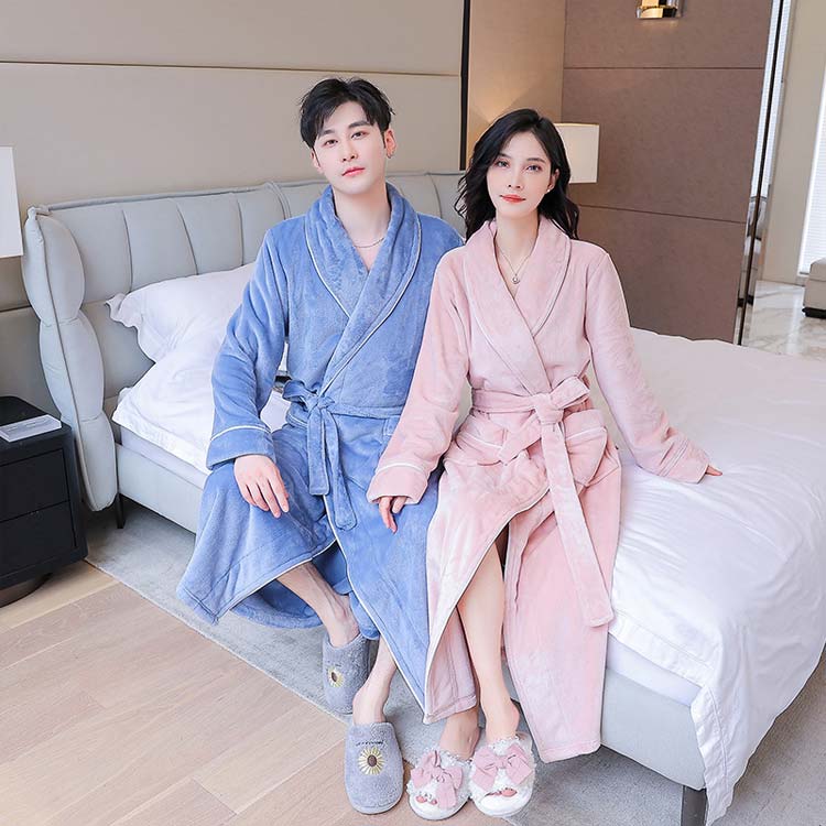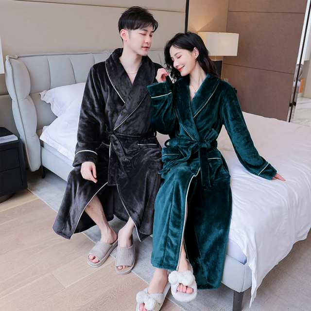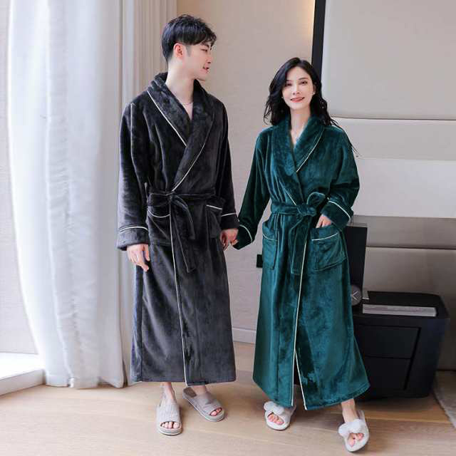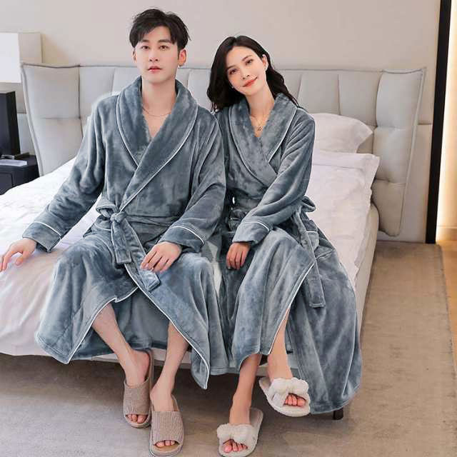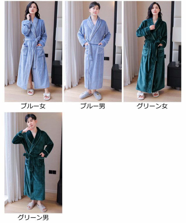 バスローブ レディース メンズ 男女兼用 カップル おしゃれ かわいい 厚手 バスタオル ルームウェア 部屋着 ロング 秋 冬 ナイトガウン ナイトウェア パジャマ お風呂上り 吸水
