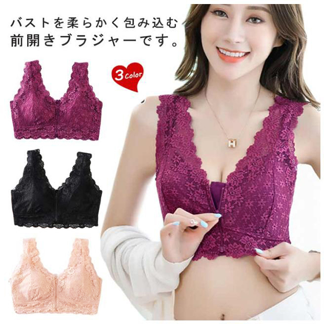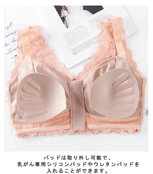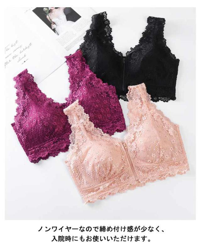 乳がん専用 フラワーレース ノンワイヤー ブラジャー レディース 前ジッパー ノンワイヤーブラ 術後 入院 下着 インナー 乳ガン 乳癌 ストレッチ性 ブラジャー 前開き 取外し可能パッド 通気性 お洒落 送料無料