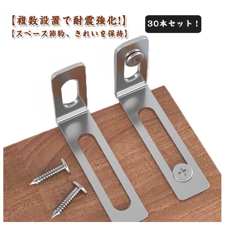 30本セット!転倒防止金具 耐震金具 地震対策 家具転倒防止 固定金具 防災用品 家具 固定 落下防止 子供安全グッズ 簡単取付 防災グッズ 転倒防止 本棚 コーナーラック テレビラック 食器棚 タンス テーブル