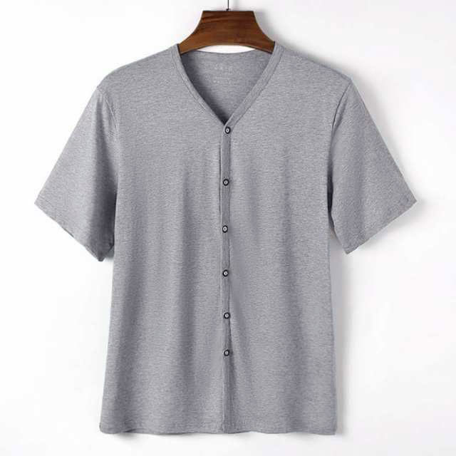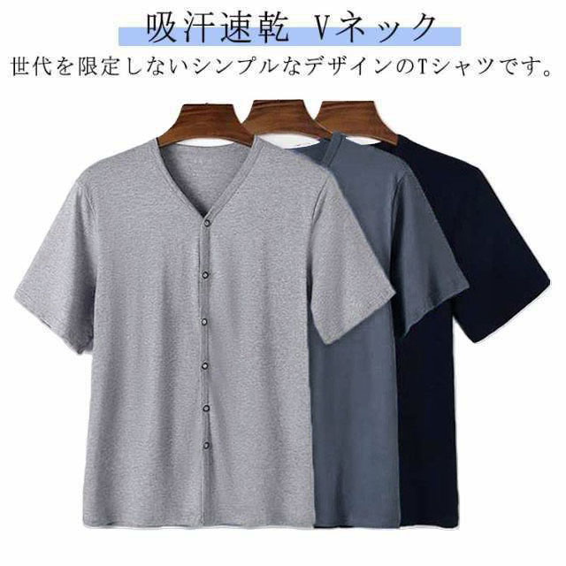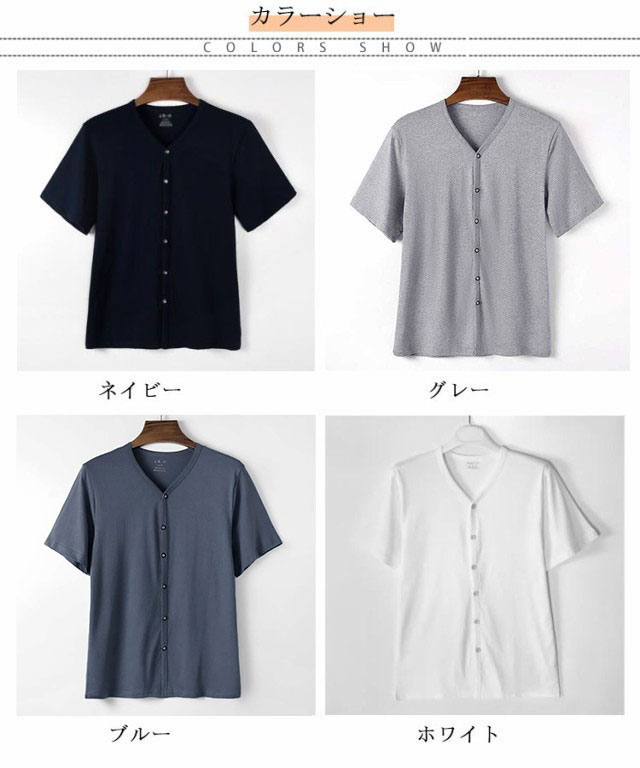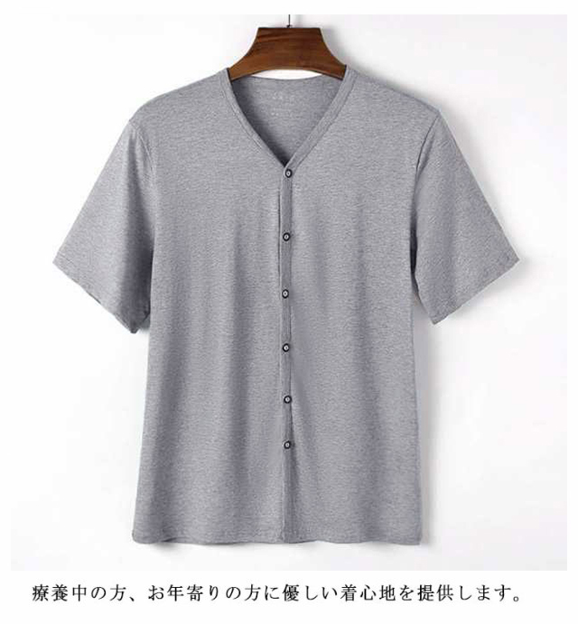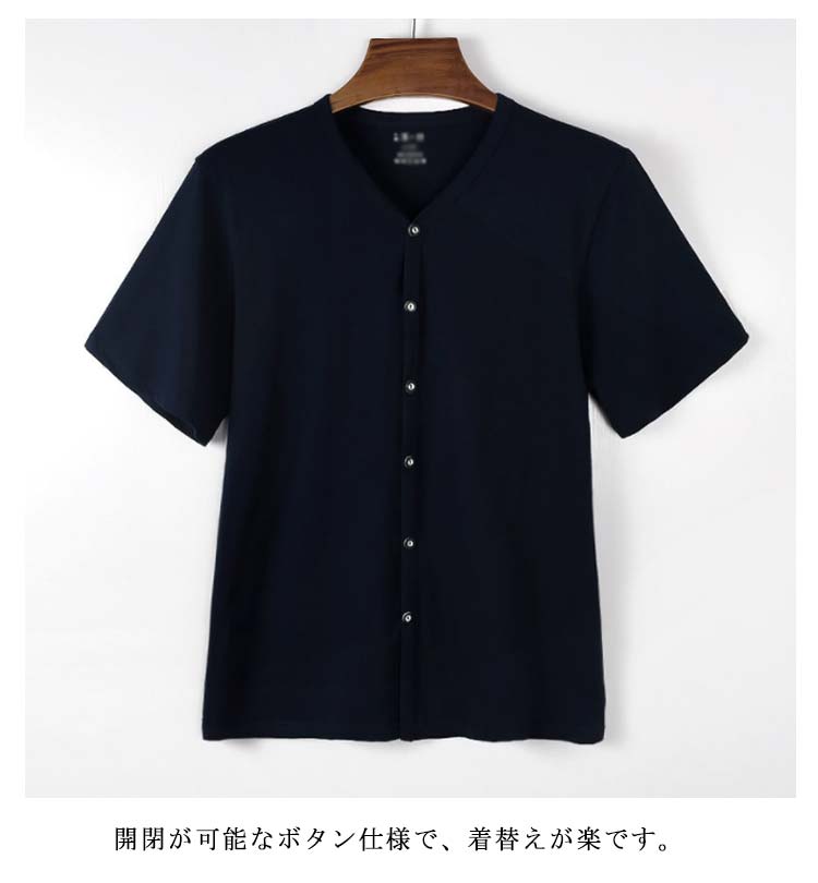 インナーシャツ メンズ トップス 半袖 前開き Vネック Tシャツ ルームウェア 下着 肌着 無地 吸汗速乾 入院 手術 介護用 部屋着 ゆったり 男性用 大きいサイズ 送料無料