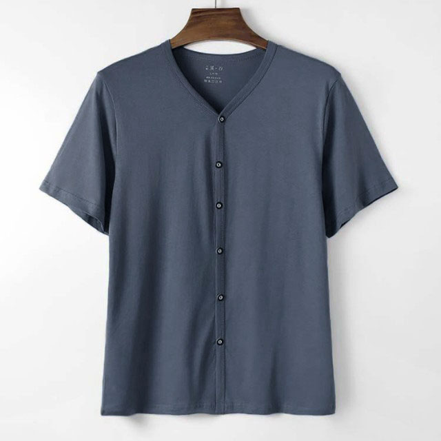 世代を限定しないシンプルなデザインのTシャツです。通気性の良いコットン生地でサラリと快適な着心地。開閉が可能なボタン仕様で、着替えが楽です。療養中の方、お年寄りの方に優しい着心地を提供します。見た目もオシャレでお部屋着にも最適なデザインです。薄くて軽い素材を使用しているため、アウトドアにもおすすめです。