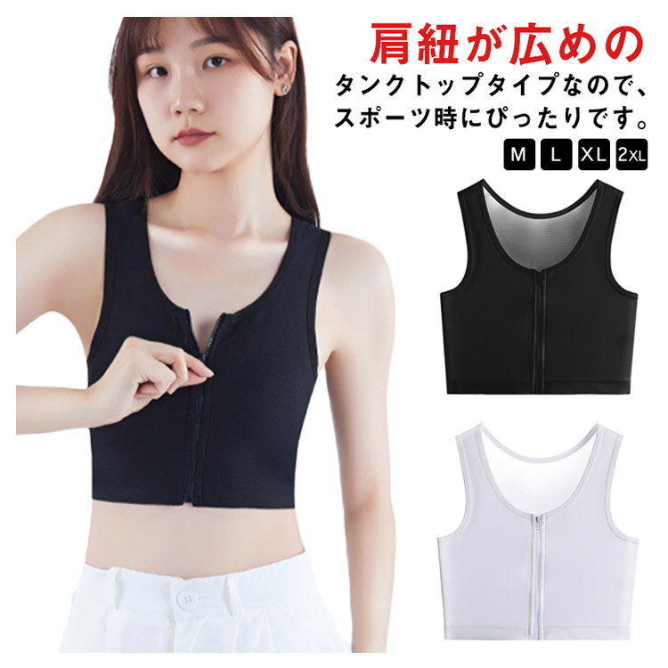 肩紐が広めのタンクトップタイプなので、スポーツ時にぴったりです。フロントファスナー仕様ので使い勝手が良いです。背中には通気性に優れたメッシュ素材を使用し、ムレをおさえ、快適な着心地です。胸を強力に抑えるので、スポーツ時の胸揺れ防止としても大活躍!浴衣やお着物の下着として、コスプレ時の胸つぶしとしてなどにおすすめ。