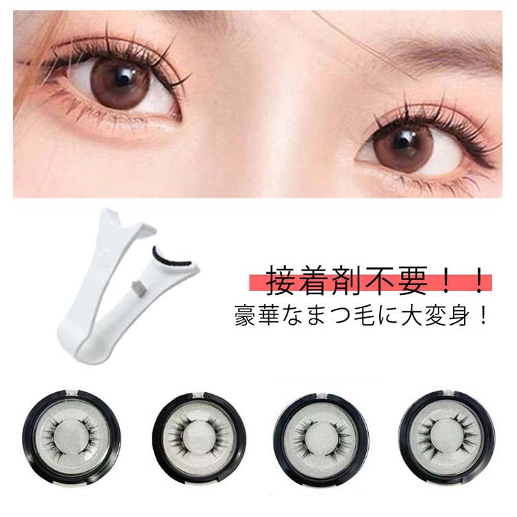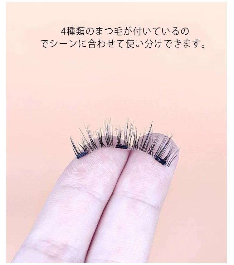 | 接着剤不要!!豪華なまつ毛に大変身! 磁気アイライナーには超微細な磁性粒子が含まれているため、まつげを簡単に付けておくことができます。 4種類のまつ毛が付いているのでシーンに合わせて使い分けできます。 | |