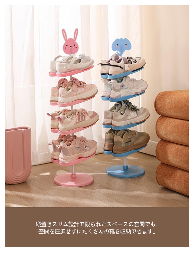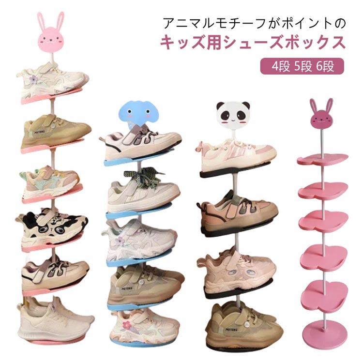 シューズラック 靴箱 靴入れ キッズシューズラック 4段 5段 6段 子ども用 下駄箱 玄関収納 収納ラック 子供用 シューズ収納 靴 子供靴 キッズ用 省スペース スリム アニマル 動物 パンダ ウサギ 象 シューズボックス おしゃれ かわいい 360℃回転 高さ調節