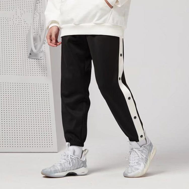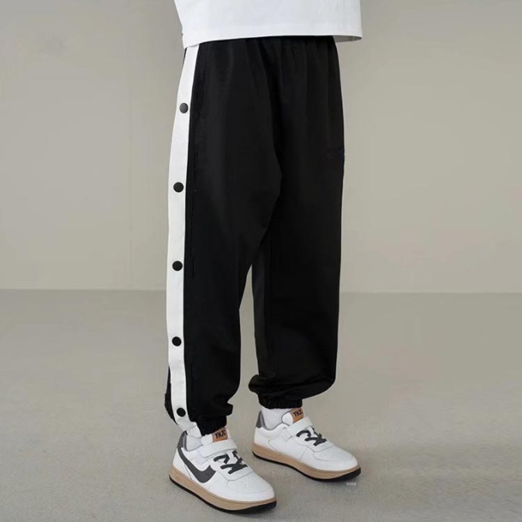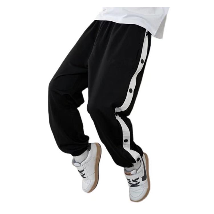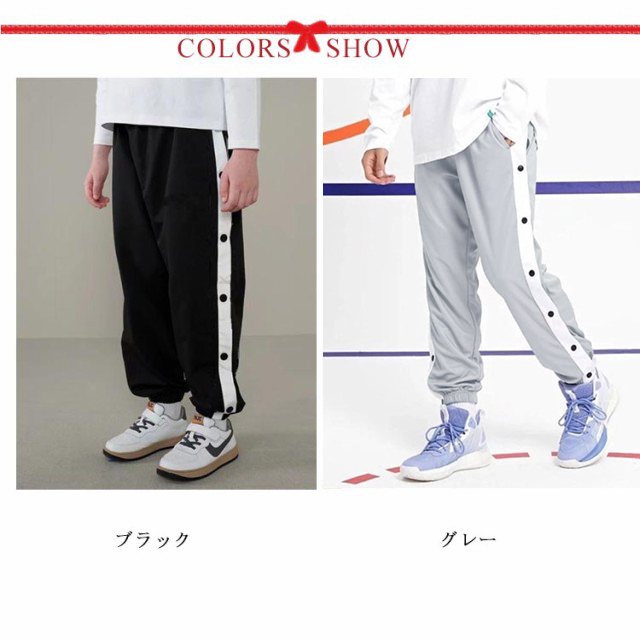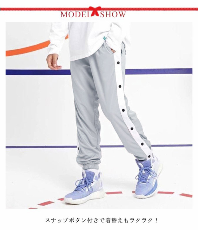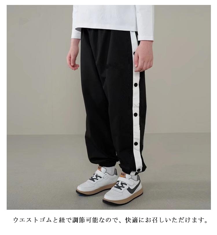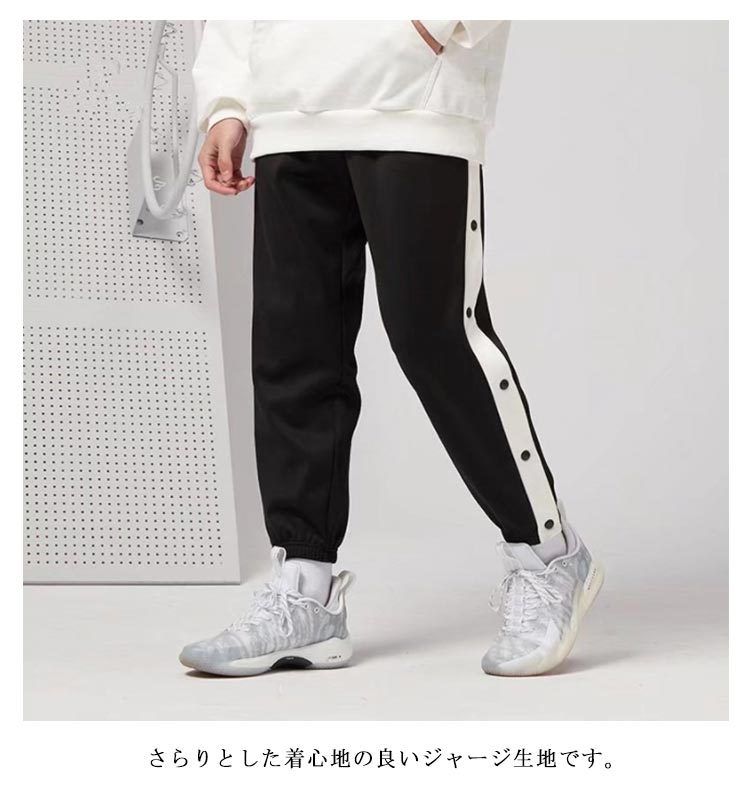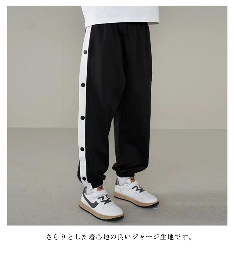 バスケットボールパンツ バスケパンツ キッズ ジュニア 裾ボタン ジャージパンツ バスケットボール 練習用パンツ サイドライン スナップボタン 長ズボン ロングパンツ ジャージ 下 男の子 女の子