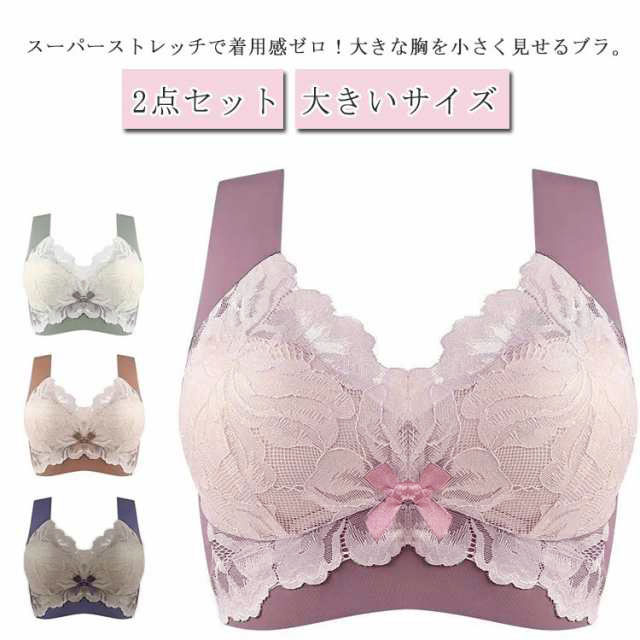 6Lまで!胸を小さく見せるブラ ブラジャー 大きいサイズ ノンワイヤーブラ 小さく見せるブラ 2点セット ブラジャー 着やせブラ 補正ブラ 大きな胸を小さく見せる レース ナイトブラ L 2L 3L 4L 5L 6L