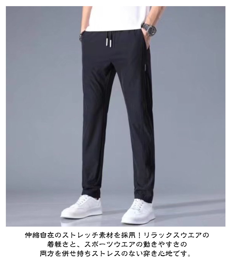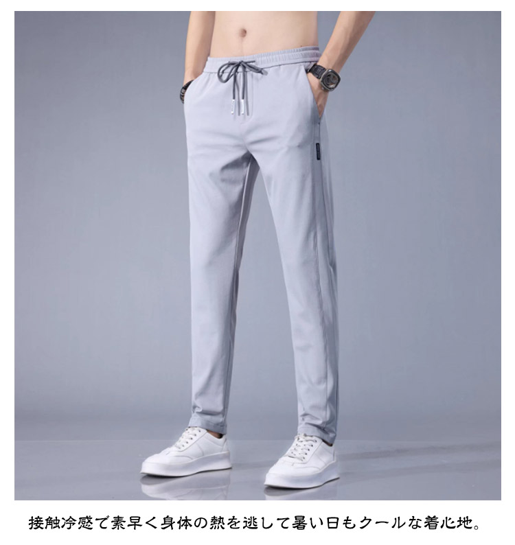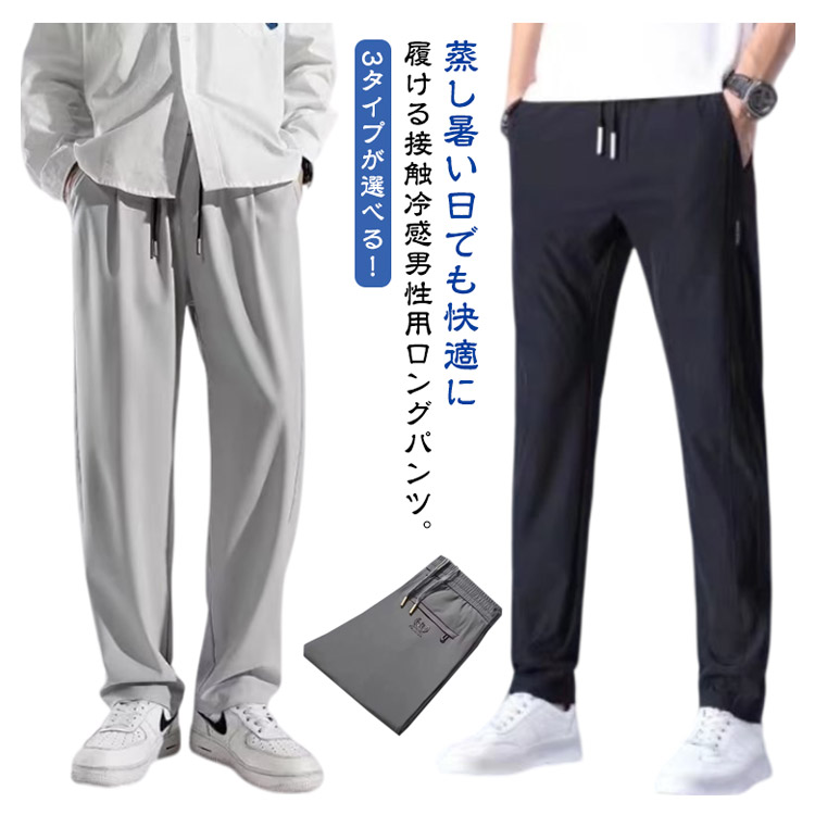 3タイプ!アイスシルク パンツ 接触冷感 ロングパンツ メンズ イージーパンツ 冷感パンツ 薄手 ゴルフパンツ ウエストゴム ストレッチパンツ 伸縮 長ズボン 通気 速乾 スポーツパンツ 大きいサイズ 夏 涼しい サマーパンツ チノパン カジュアル 黒 グレー 送料無料