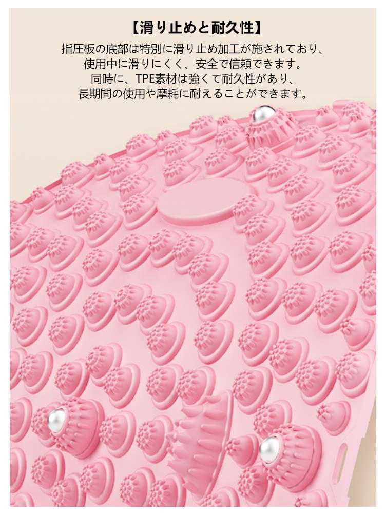 【足裏マッサージマット】【35cm 48cm 55cm】【TPE素材】マッサージマットは高品質のTPE素材でできており、柔らかく、快適で弾力性があり、足の圧力を効果的に緩和し、ツボ押し部分が変形してしまう心配もございません【ストレス解消】 このフットヨガマッサージ指圧マットを使用すると、心と体をリラックスさせ、ストレスや緊張を軽減し、全体的な健康を促進する心地よい体験を提供します【滑り止めと耐久性】指圧板の底部は特別に滑り止め加工が施されており、使用中に滑りにくく、安全で信頼できます。同時に、TPE素材は強くて耐久性があり、長期間の使用や摩耗に耐えることができます。【お手入れと保管が簡単】お手入れが簡単で、ブラシで洗った後は元の形状に戻すことができます。自宅やオフィス、旅行先などでも気軽にフットマッサージが楽しめます。使用しないときは、簡単に壁に掛けて保管でき、スペースを節約できます【多機能】ウォーキングマッサージマットとしてだけでなく、滑りマットがお風呂に入るときにバスルームに置いて足裏をマッサージすることもできます。また、ゲーム罰マットとしても使用でき、遊ぶことができます。
