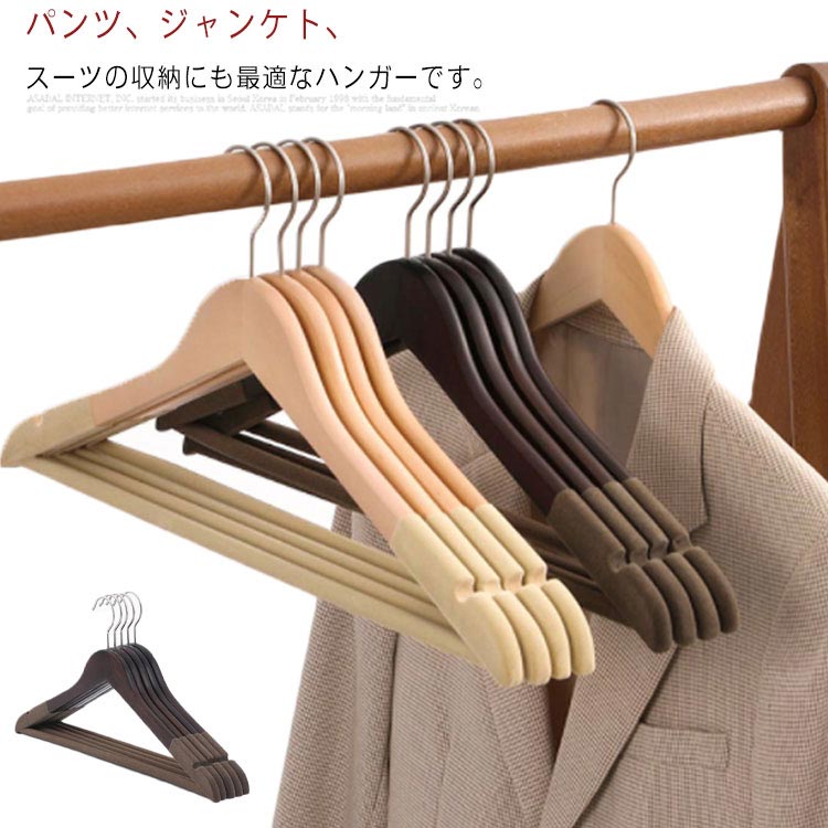 スーツハンガー 5本組セット 木製 ハンガー 衣類ハンガー 洋服ハンガー 回転式フック 360度回転 滑り止め 多機能 省スペース 耐荷重 クローゼット 家庭用