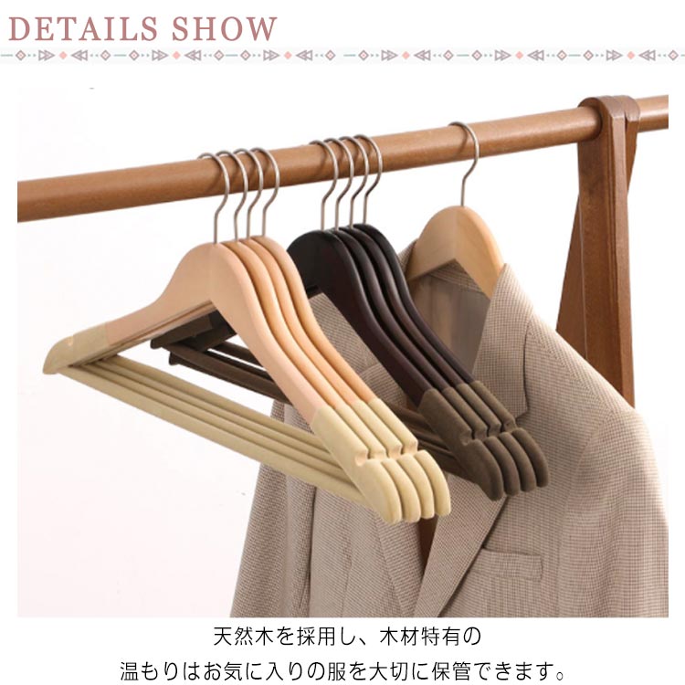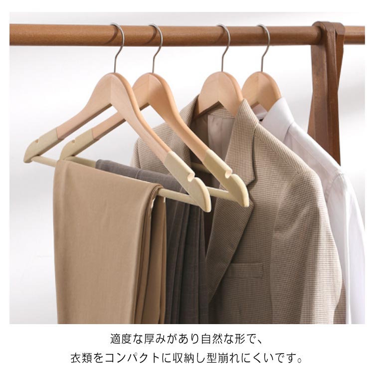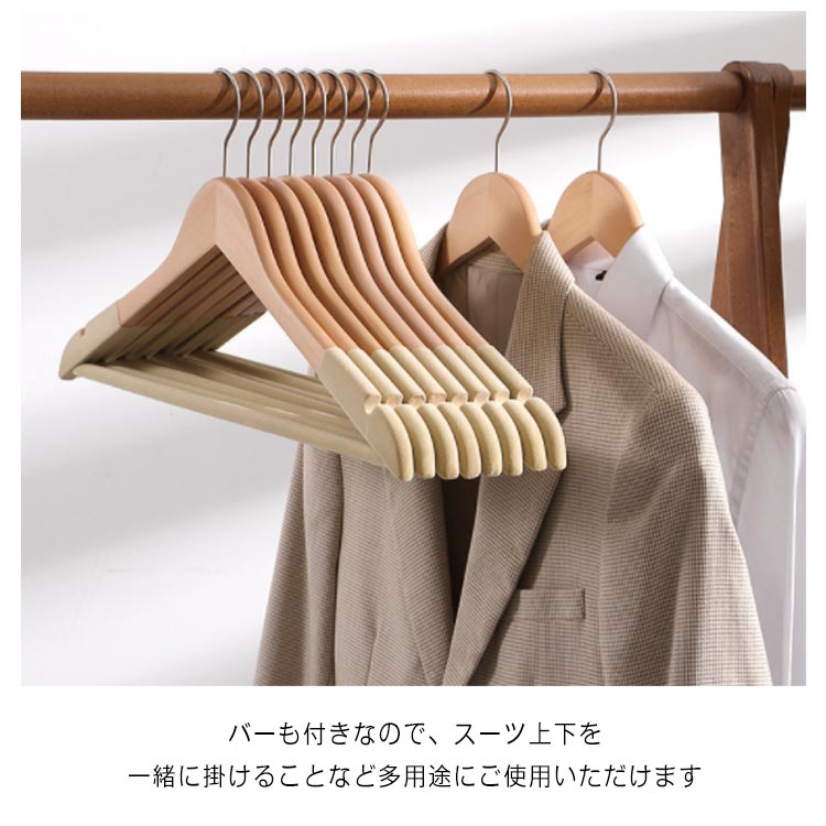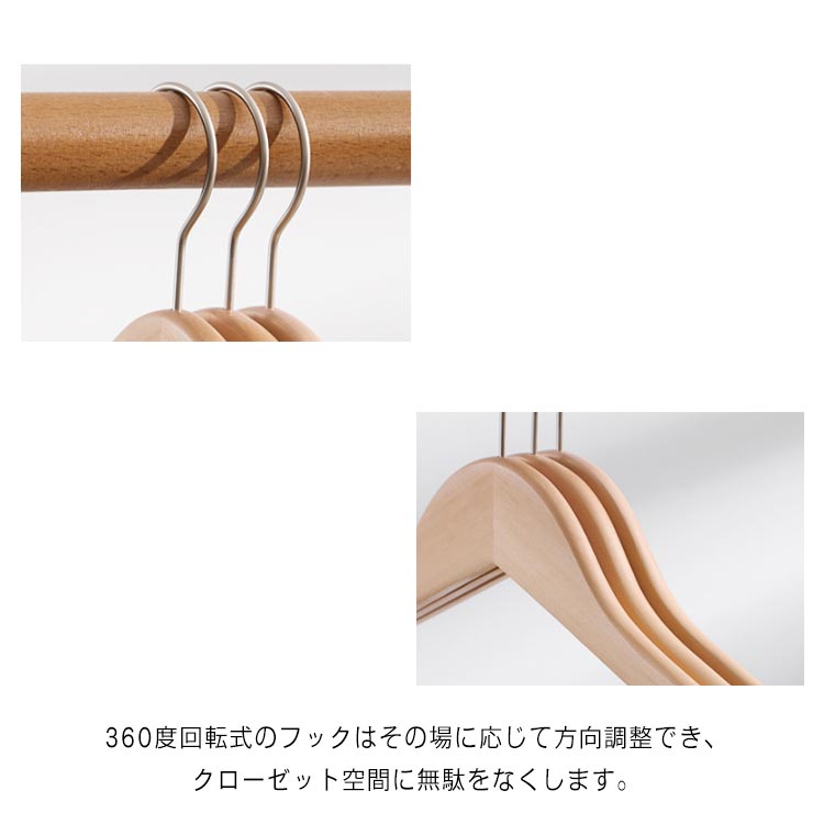 | パンツ、ジャンケト、スーツの収納にも最適なハンガーです。 天然木を採用し、木材特有の温もりはお気に入りの服を大切に保管できます。 バーも付きなので、スーツ上下を一緒に掛けることなど多用途にご使用いただけます 肩先幅が5.5cmと厚みがあるのでスーツの肩が崩れずシワがよりにくくなっております。 適度な厚みがあり自然な形で、衣類をコンパクトに収納し型崩れにくいです。 360度回転式のフックはその場に応じて方向調整でき、クローゼット空間に無駄をなくします。 | |
